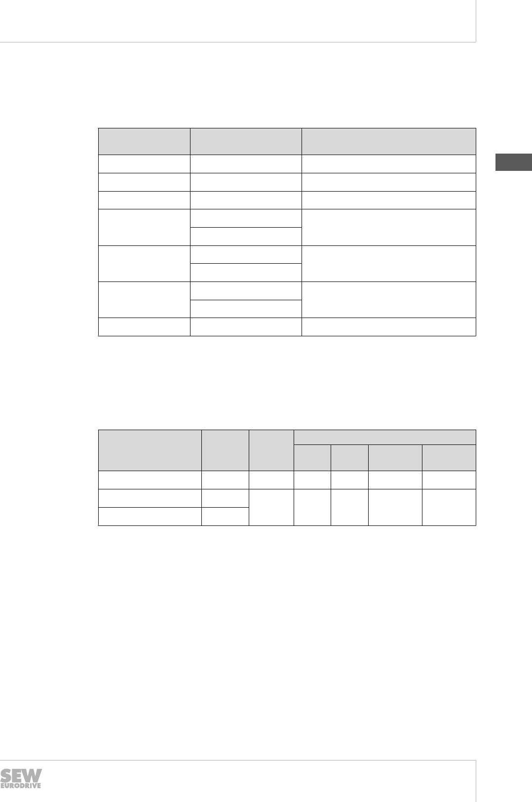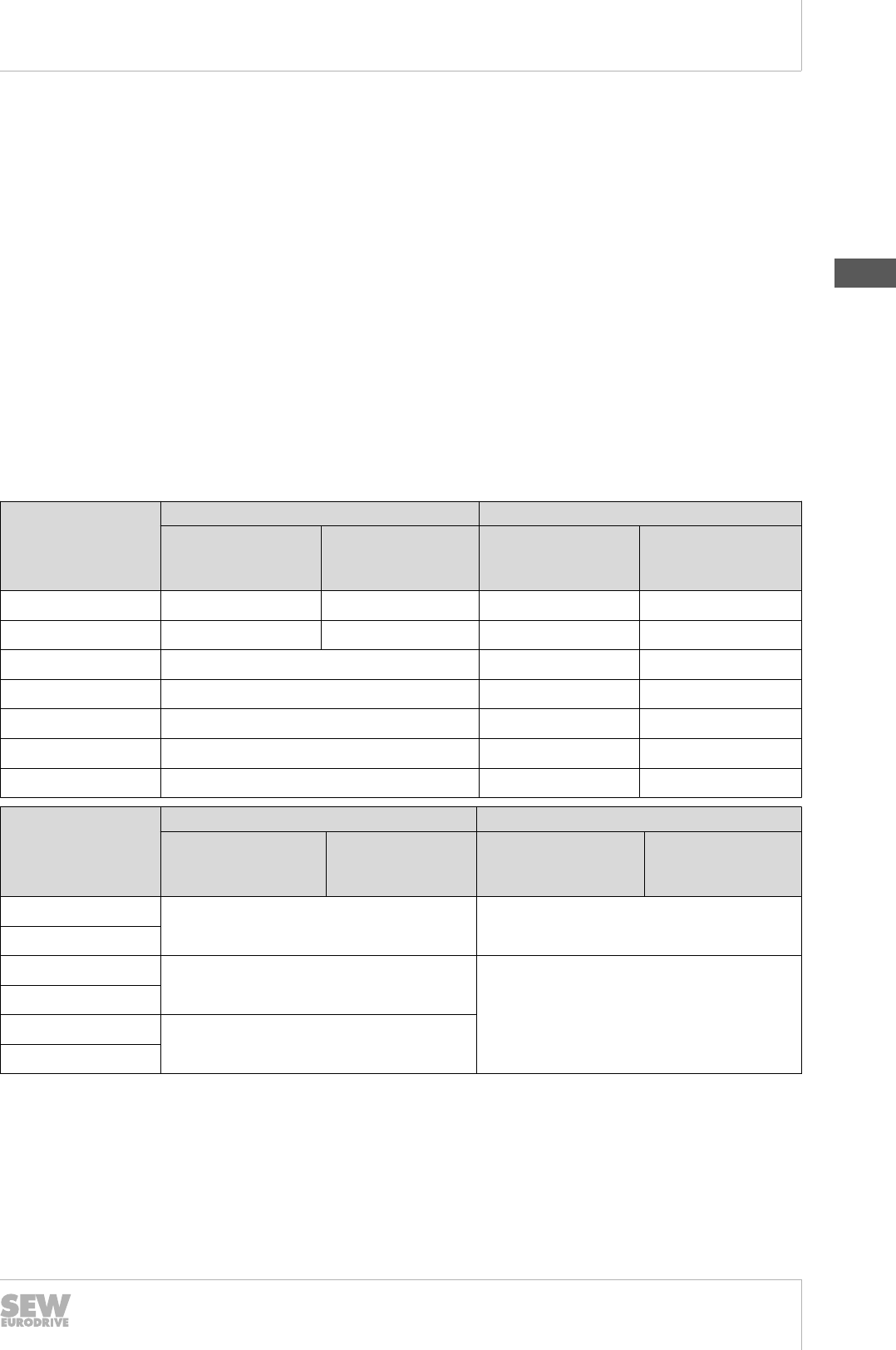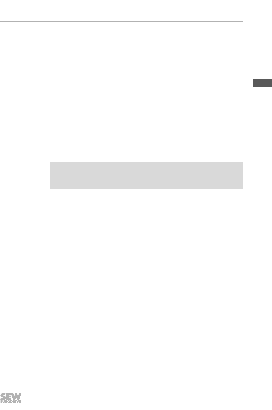 The table with the brake voltages is located in the "Brake voltage" (→ 2 126) chapter.