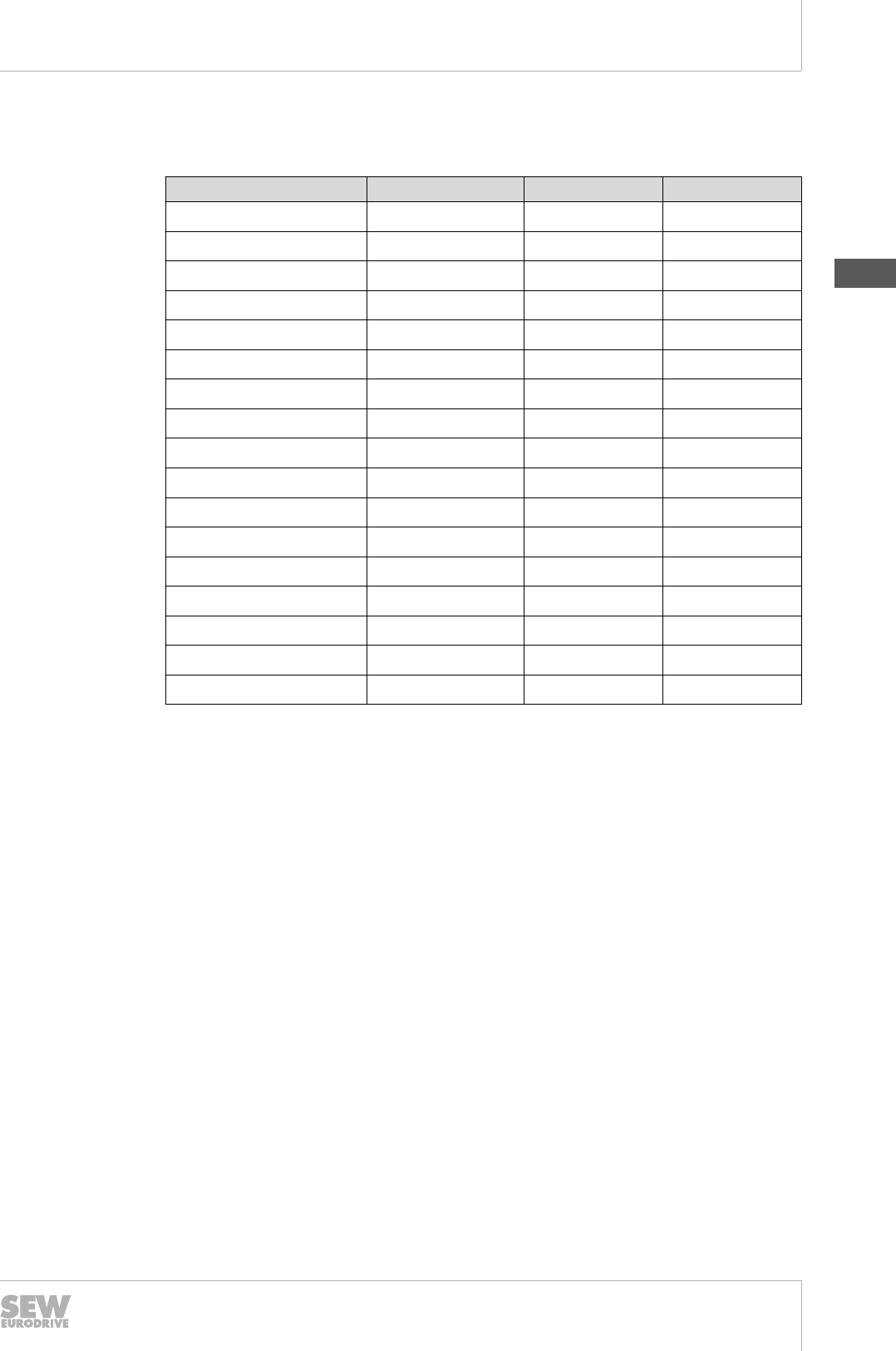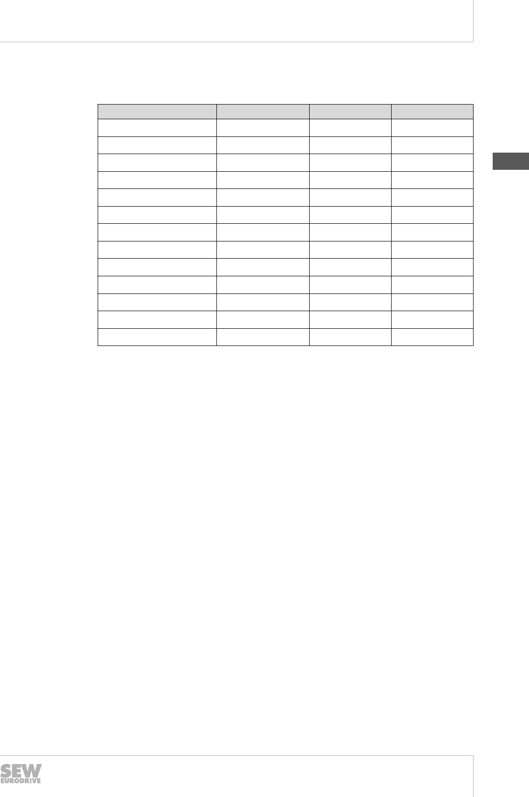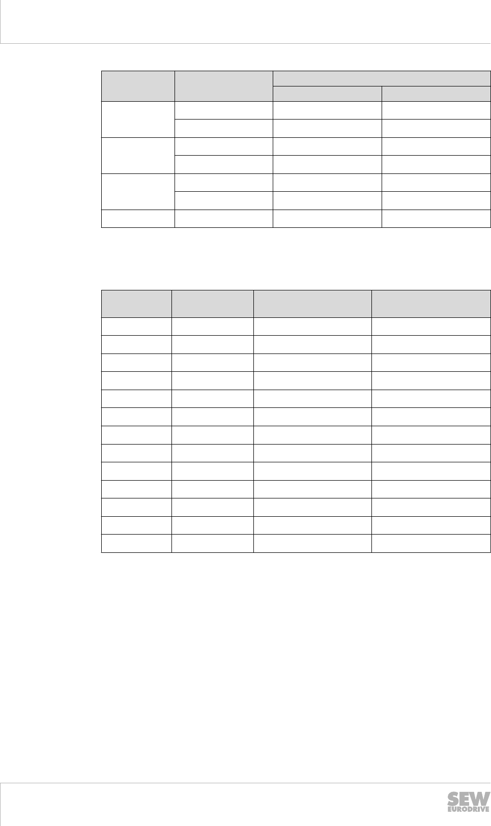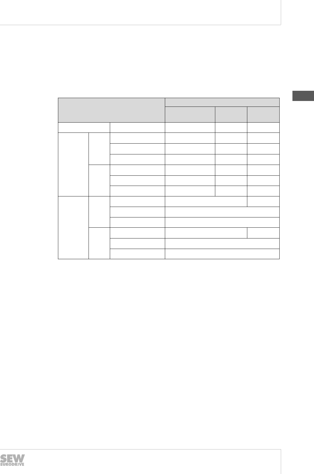 The table with the brake voltages is located in the "Brake voltage" (→ 2 126) chapter.
