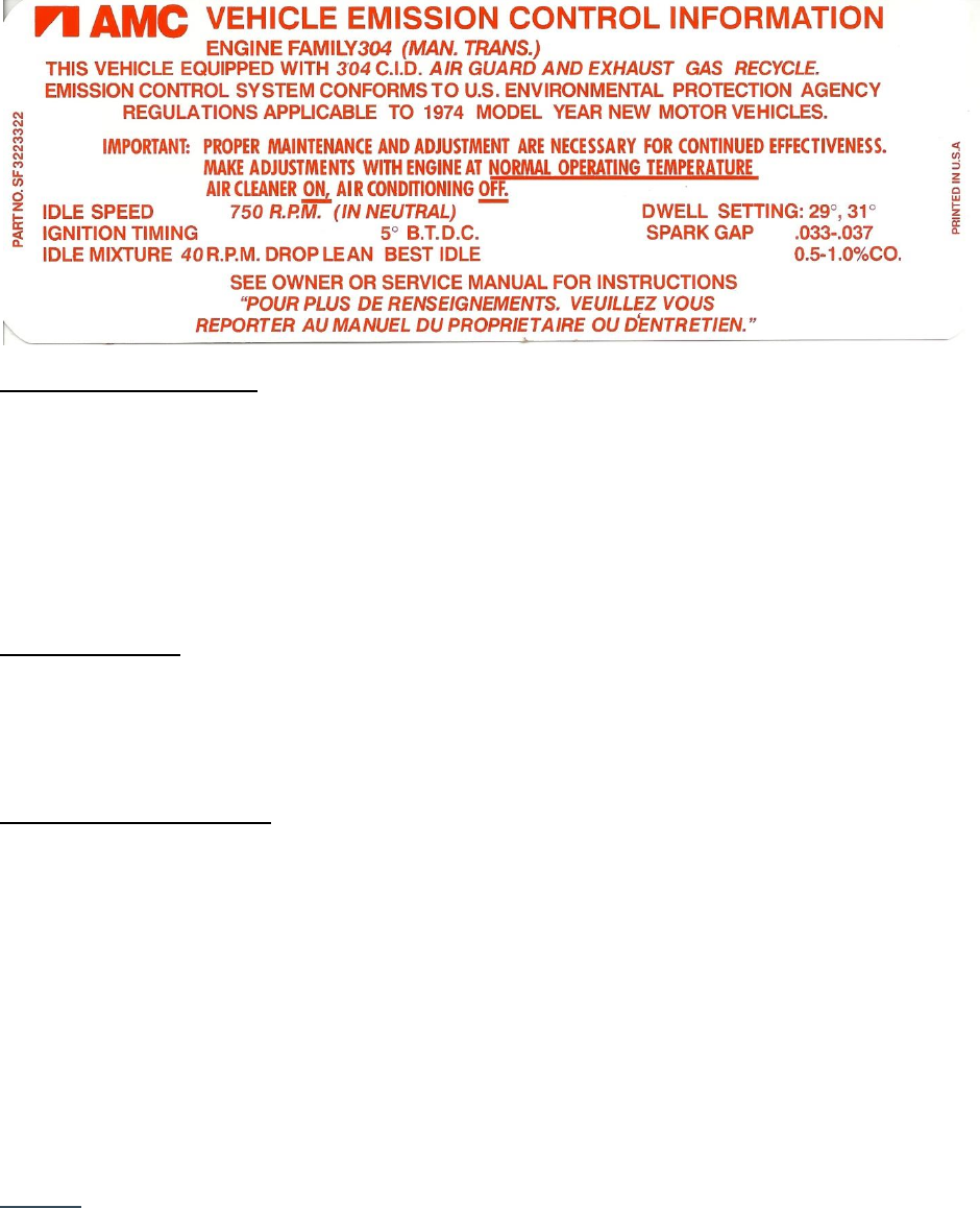 Setting idle Mixture – Edelbrock 1406 Carb (Note: Mar 12/2012 Emission test passed with each screw
