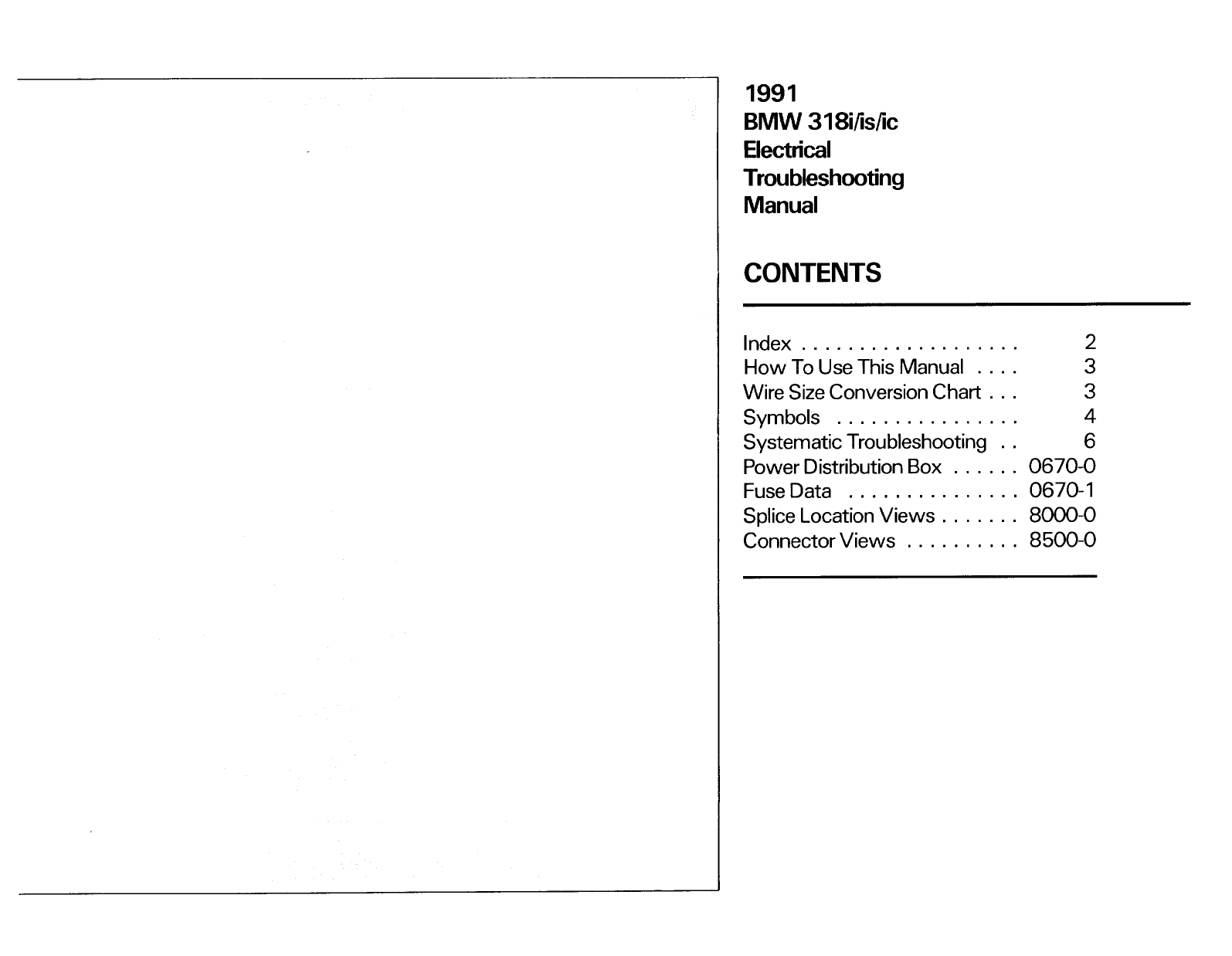 User Manual: 1991 BMW 318i - 318is - 318ic Electrical Troubleshooting Manual