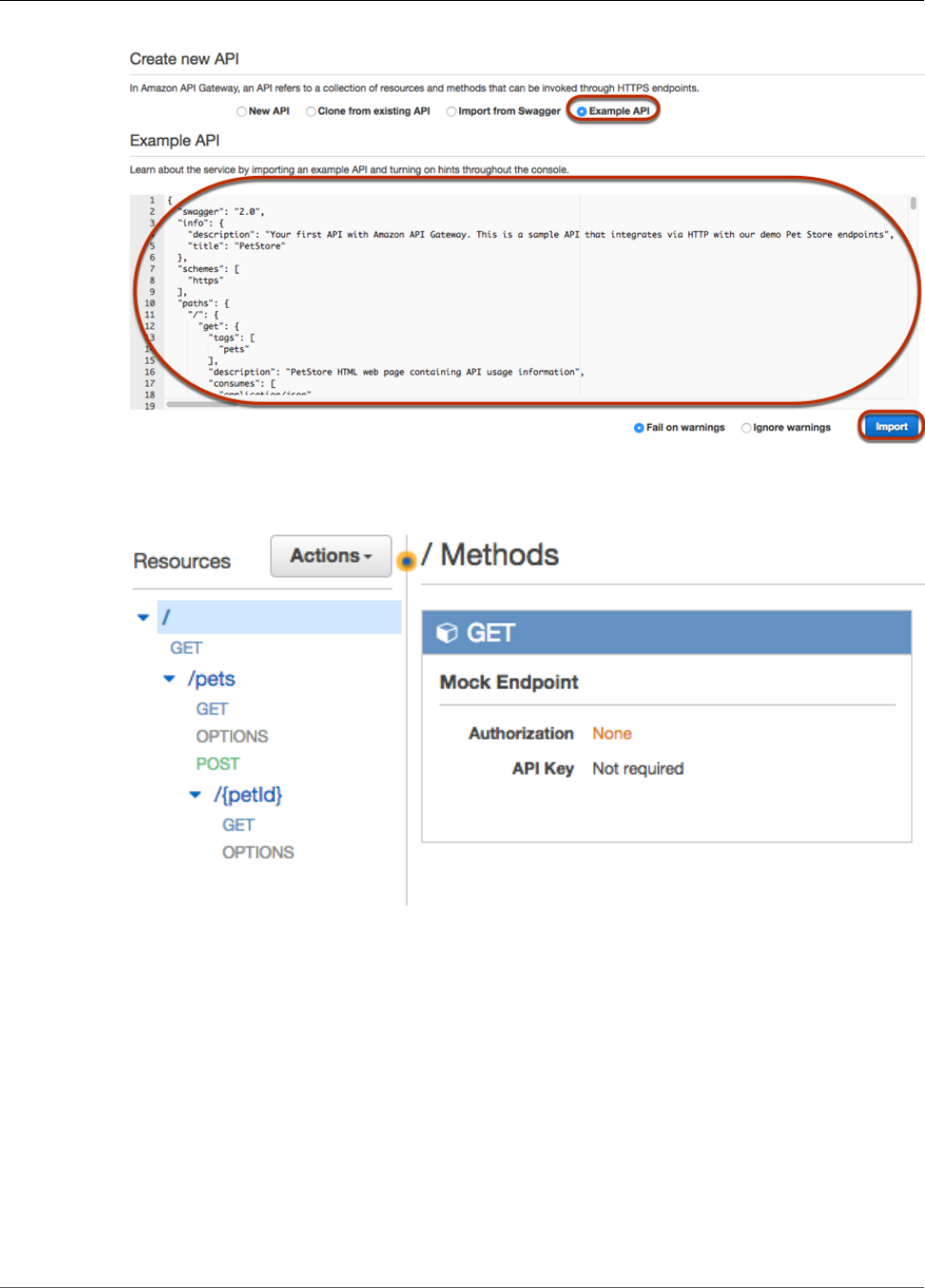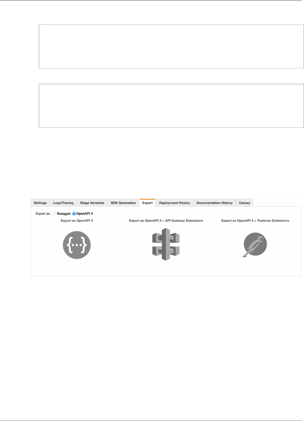 API Gateway Extensions to OpenAPI (p. 492) to create and