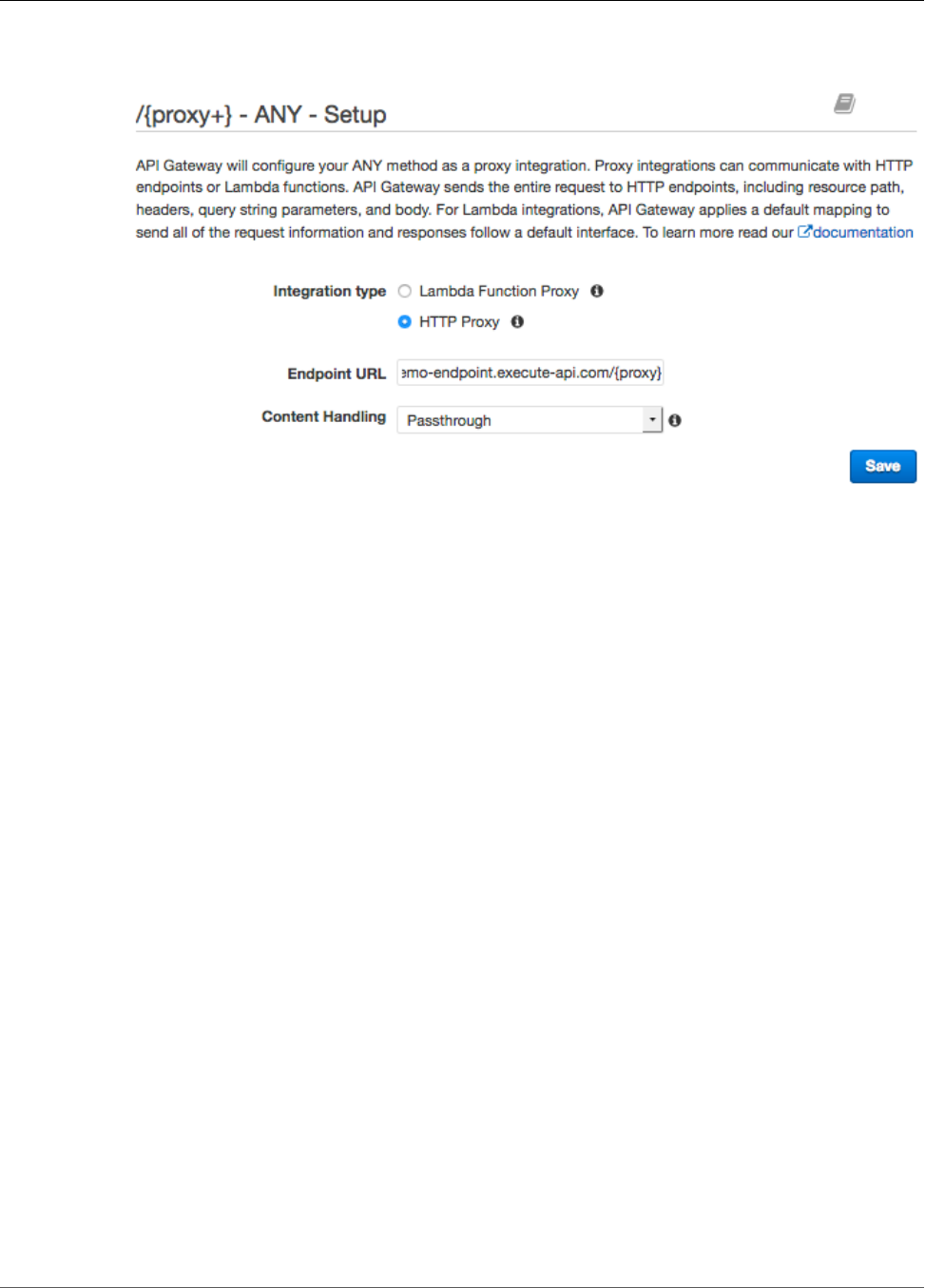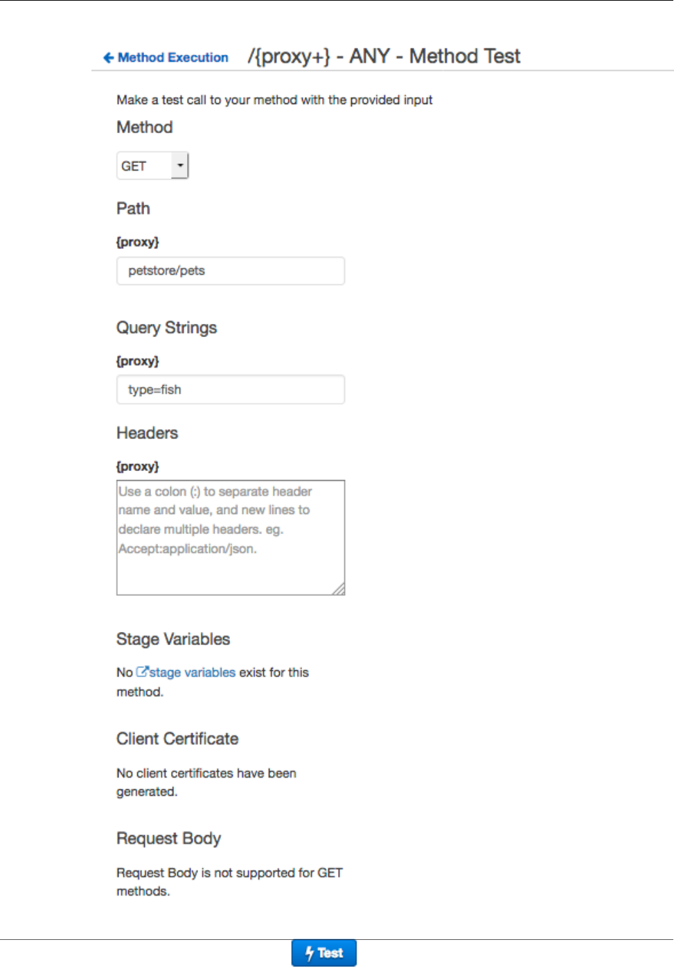 - Set up a Proxy Resource with Lambda Proxy Integration