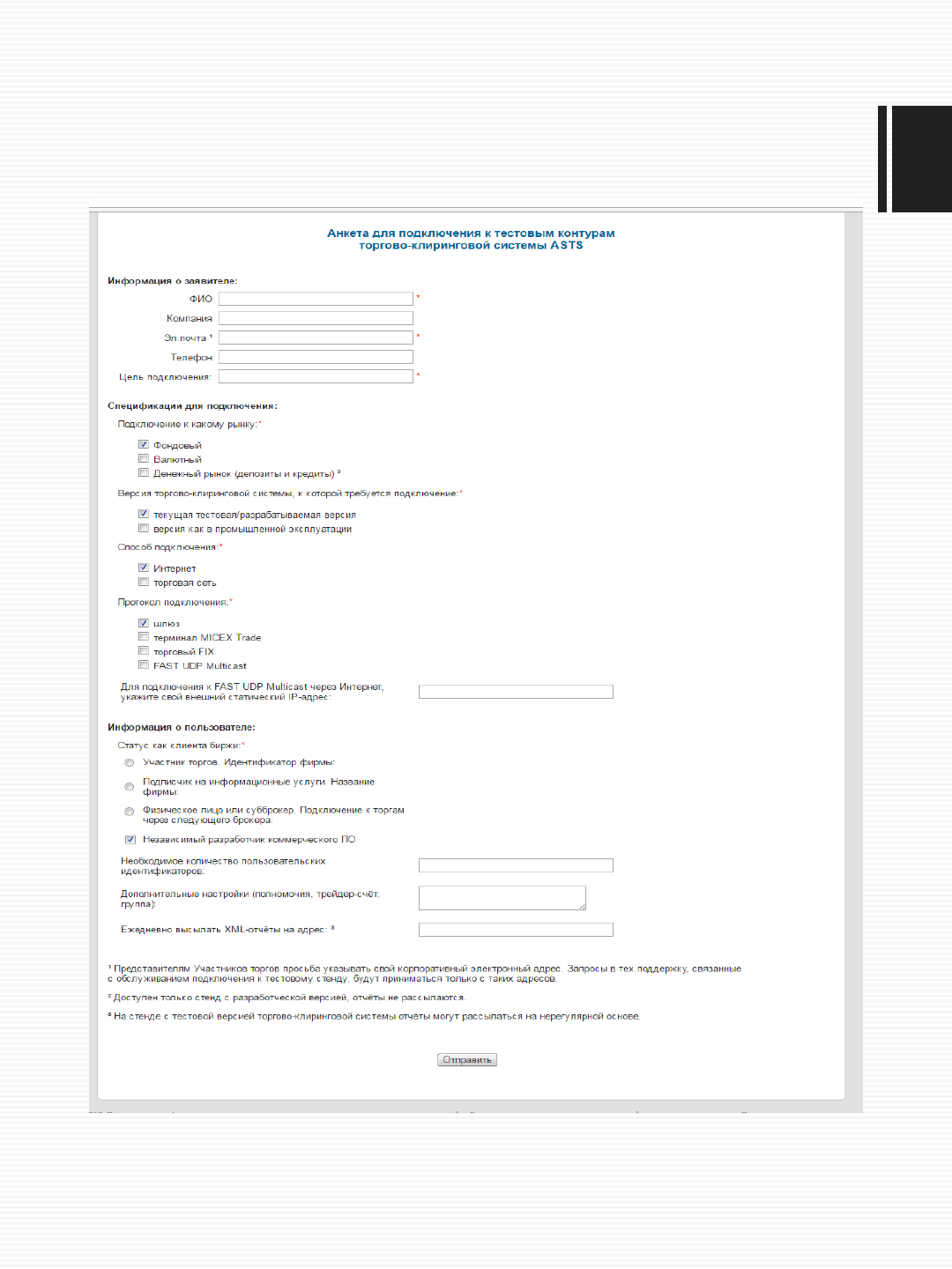 подключение к какому рынку: "фондовый"