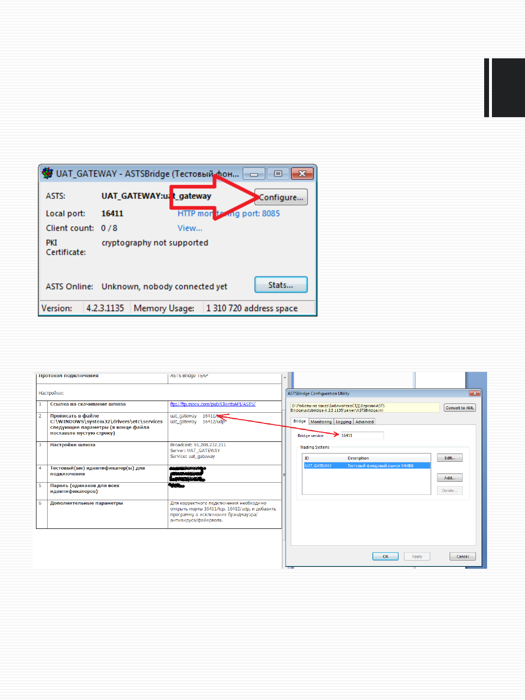 Запускаем исполняемый файл из папки server: ASTSBridge.exe
