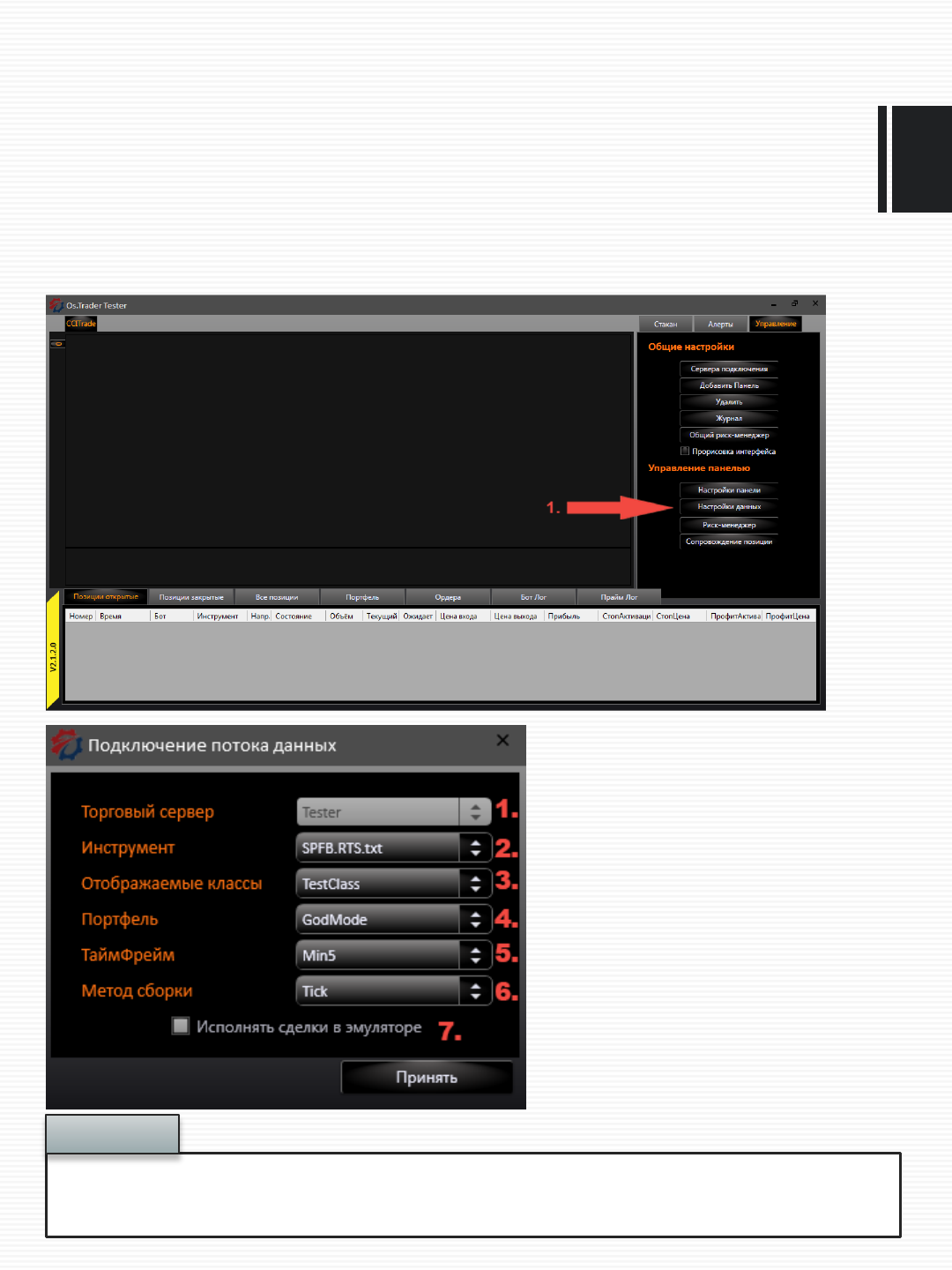 Важно! Выберите тип данных который Вы хотите получать. Либо стаканы, либо трейды.