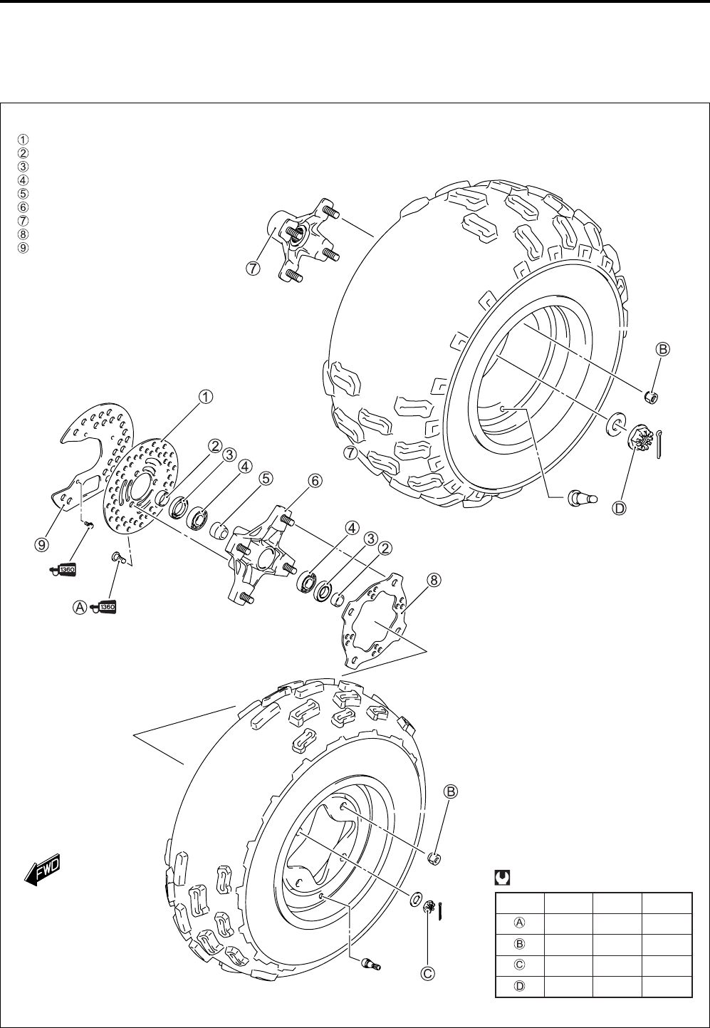 Front tire .............................................................................................. AT22 × 7-10 °°, tubeless