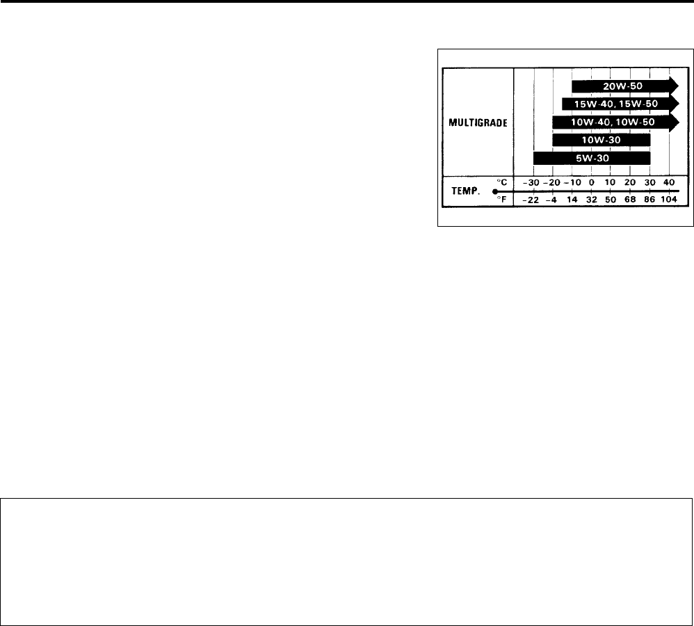 Engine oil type SAE 10W-40, API SF/SG or SH/SJ with JASO MA