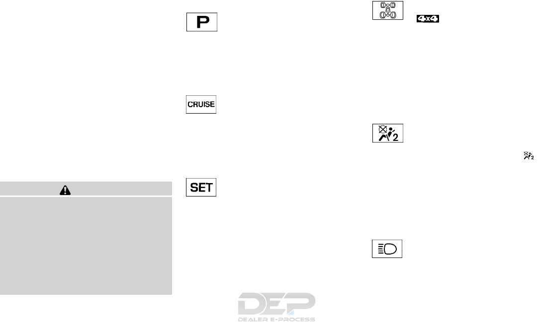 Vehicle dynamic control (VDC) off switch. . .2-29