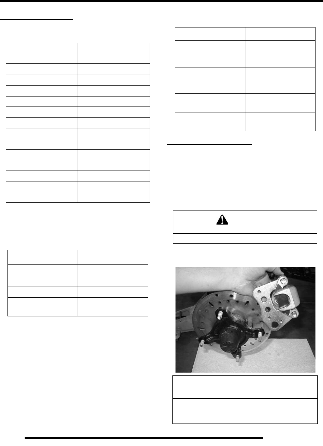 Specifications, Brake Component Torque Values . . . . . .9.2