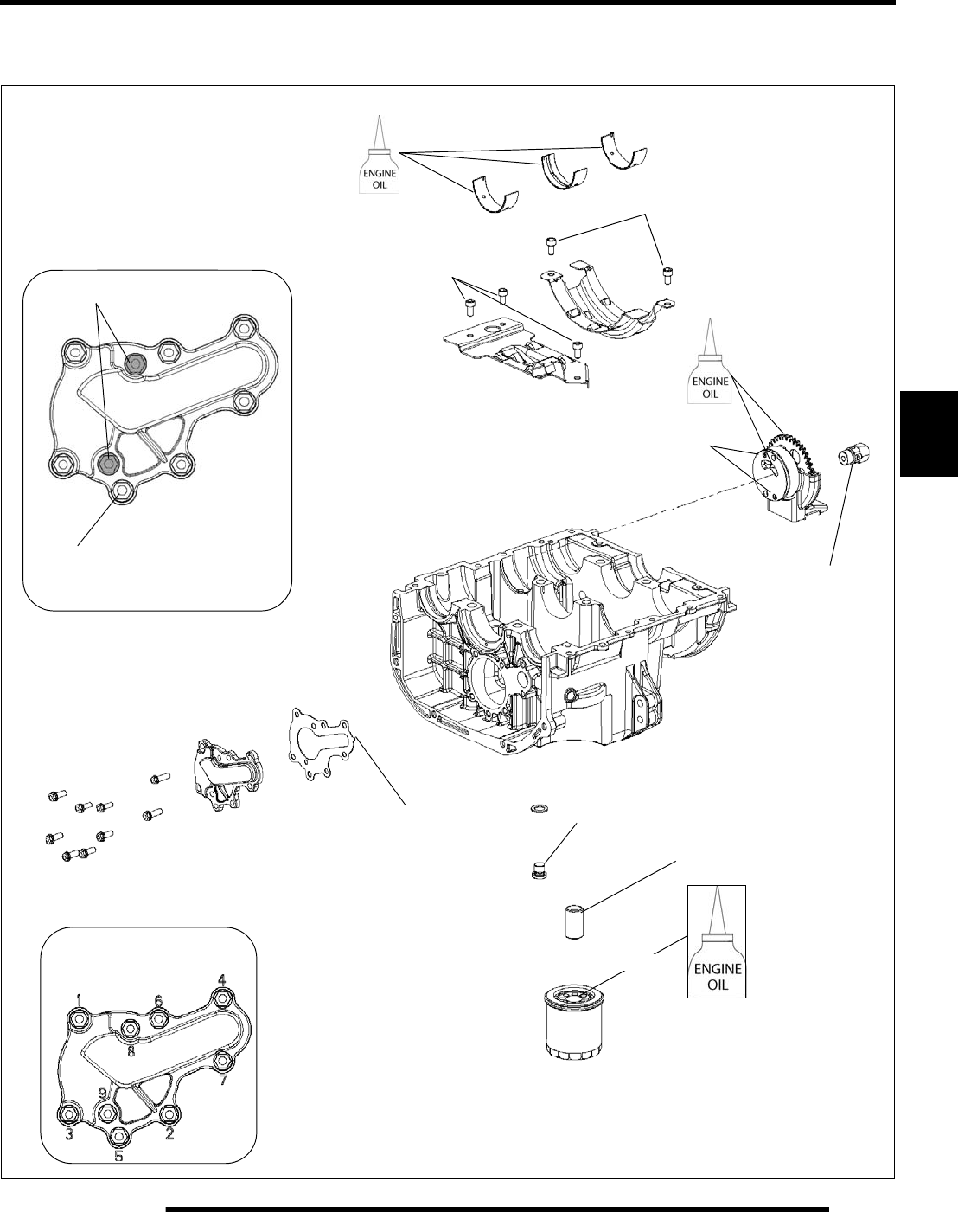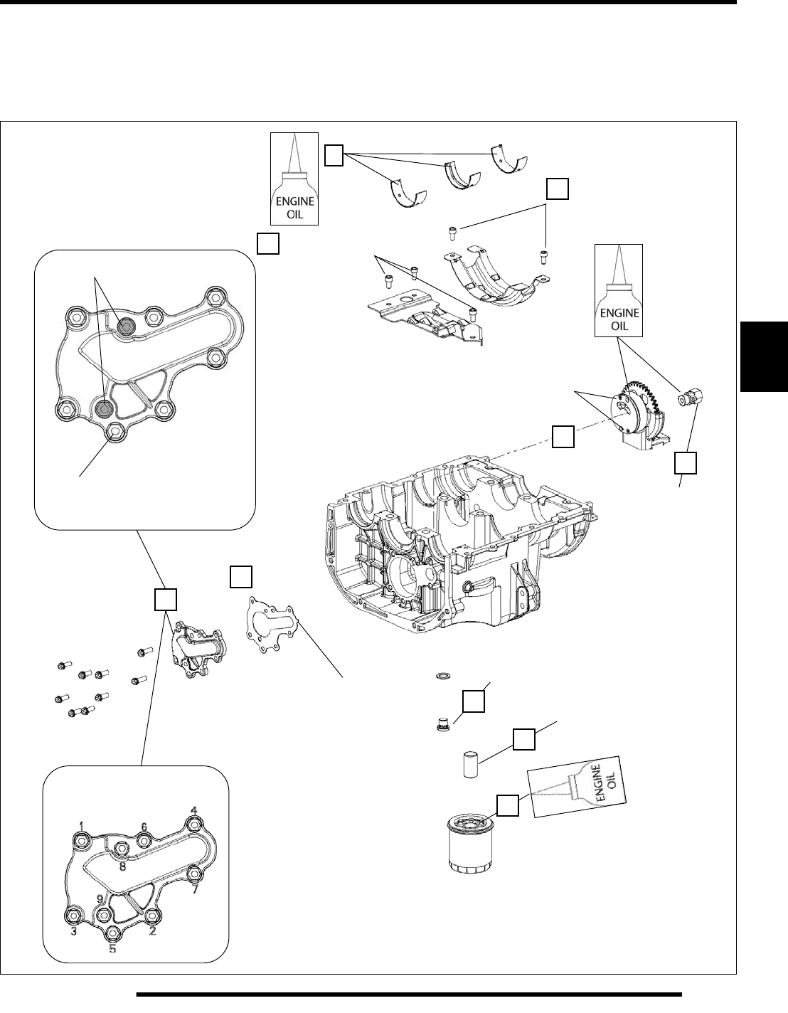 - ENGINE ASSEMBLY VIEWS AND TORQUE VALUES