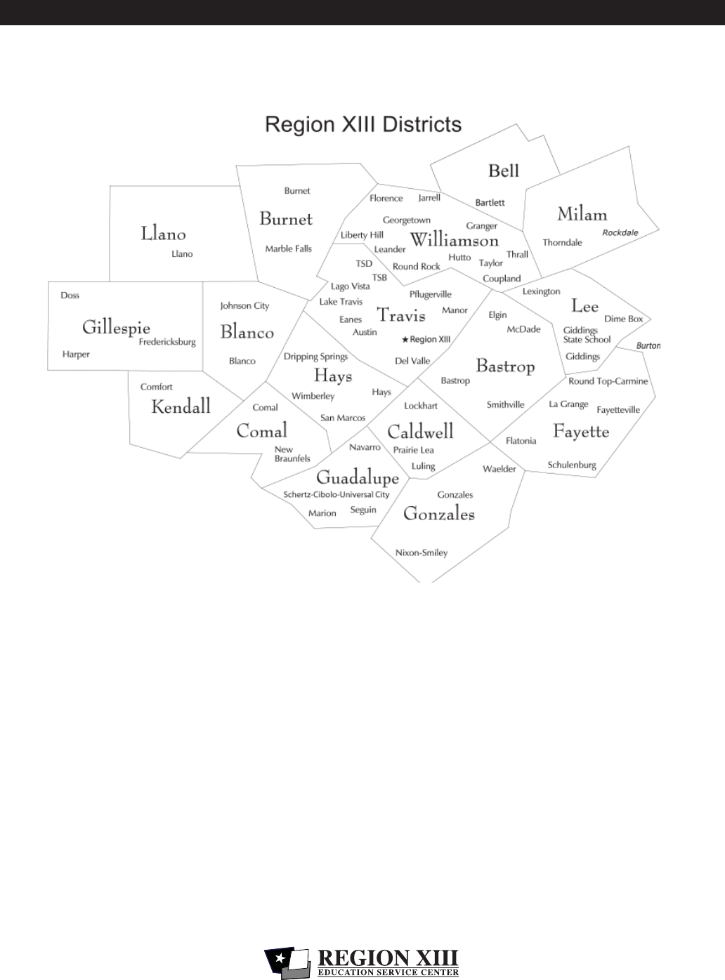 products to the 60 school districts in the 17 county area Region XIII serves. Participation by