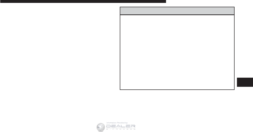 uconnect™ (Hands-Free Phone) .............. 121