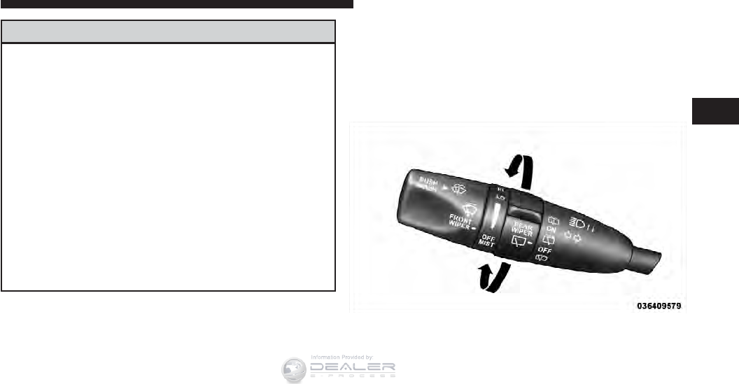 - WINDSHIELD WIPERS AND WASHERS