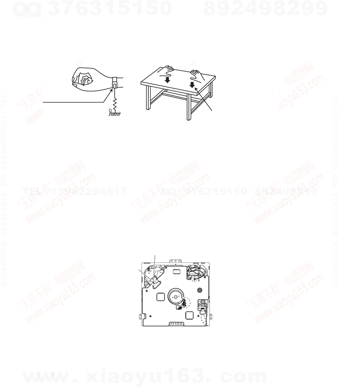 diode in the traverse unit (optical pickup). Take care to prevent this when performing repairs.