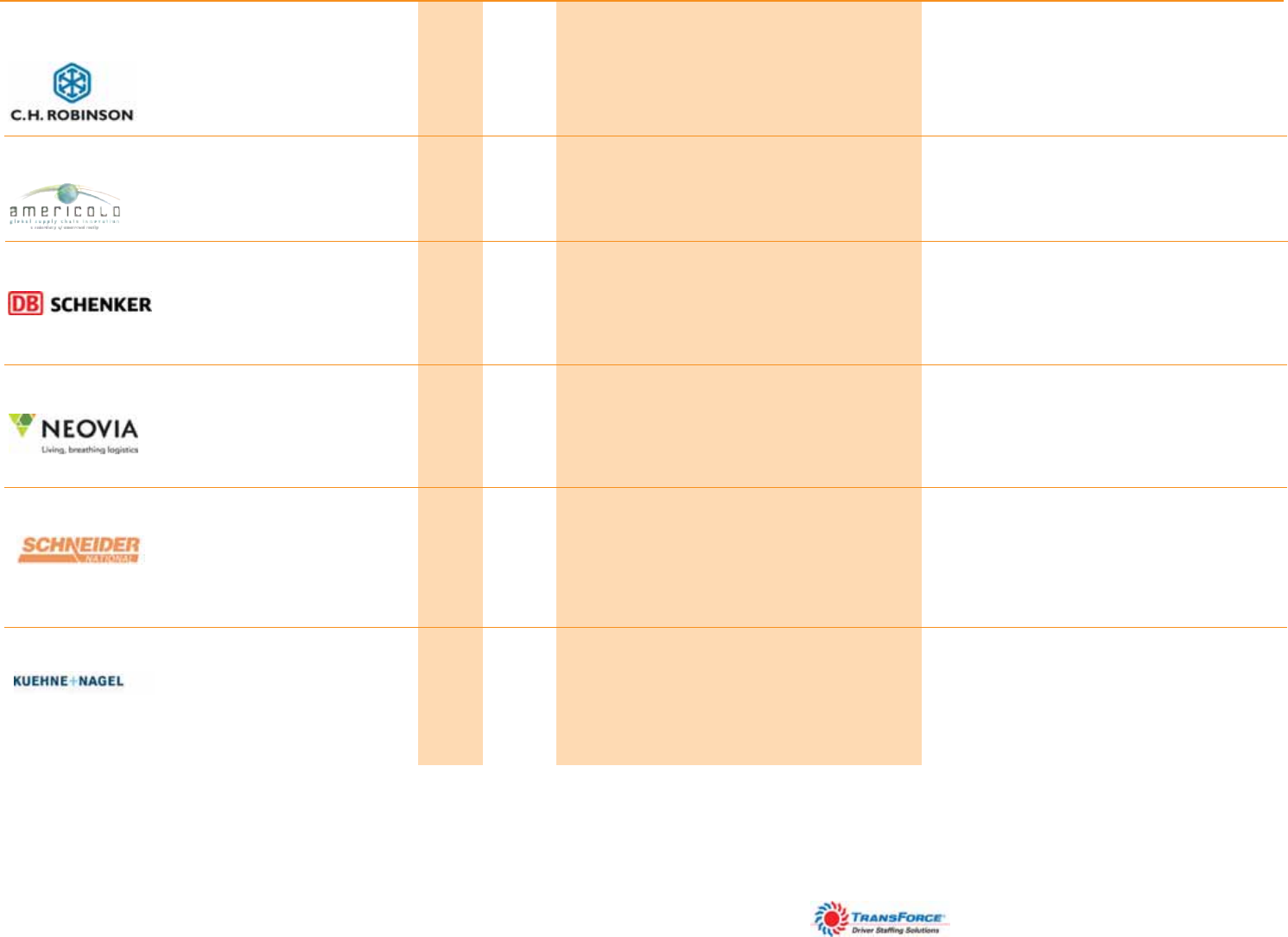 19 Schneider National Inc. 3,500 Truckload, intermodal, dedicated