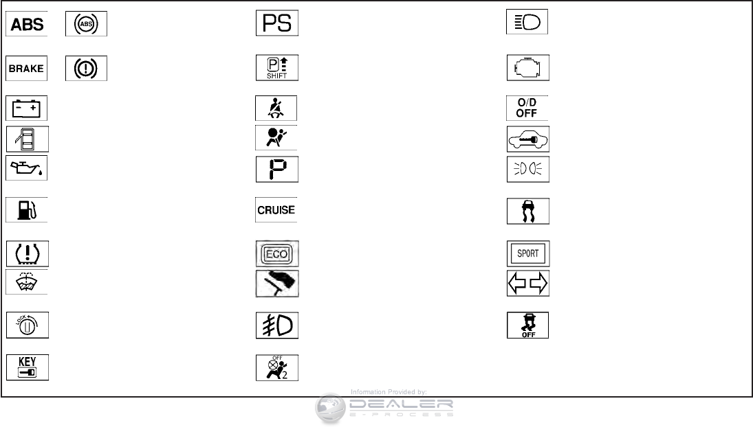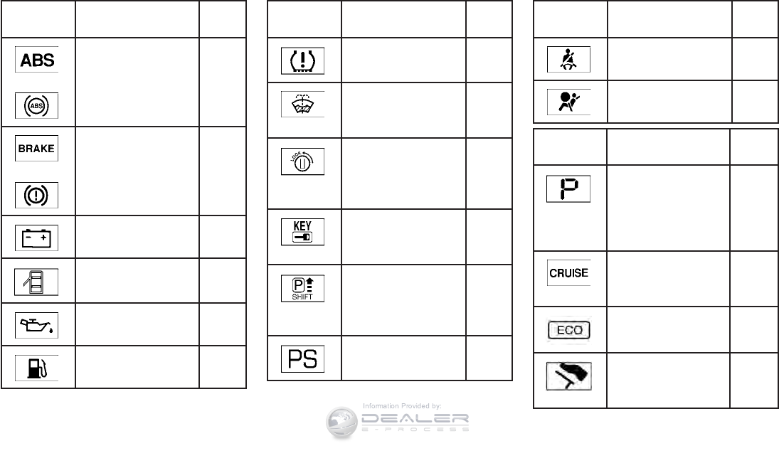 Door open warning light...........2-14