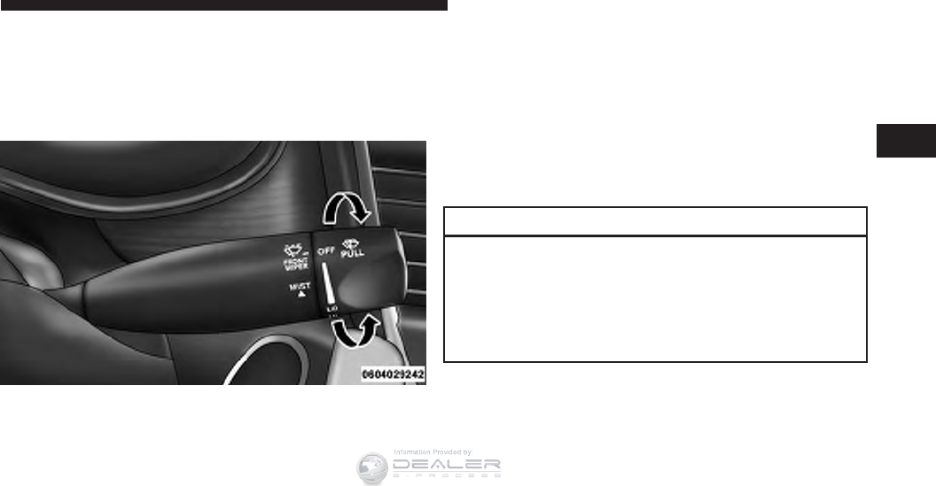 - Headlights On With Wipers (Available With Automatic Headlights Only)