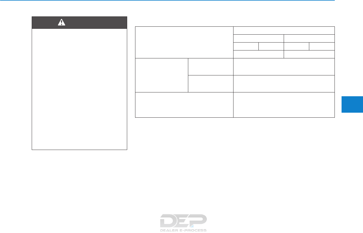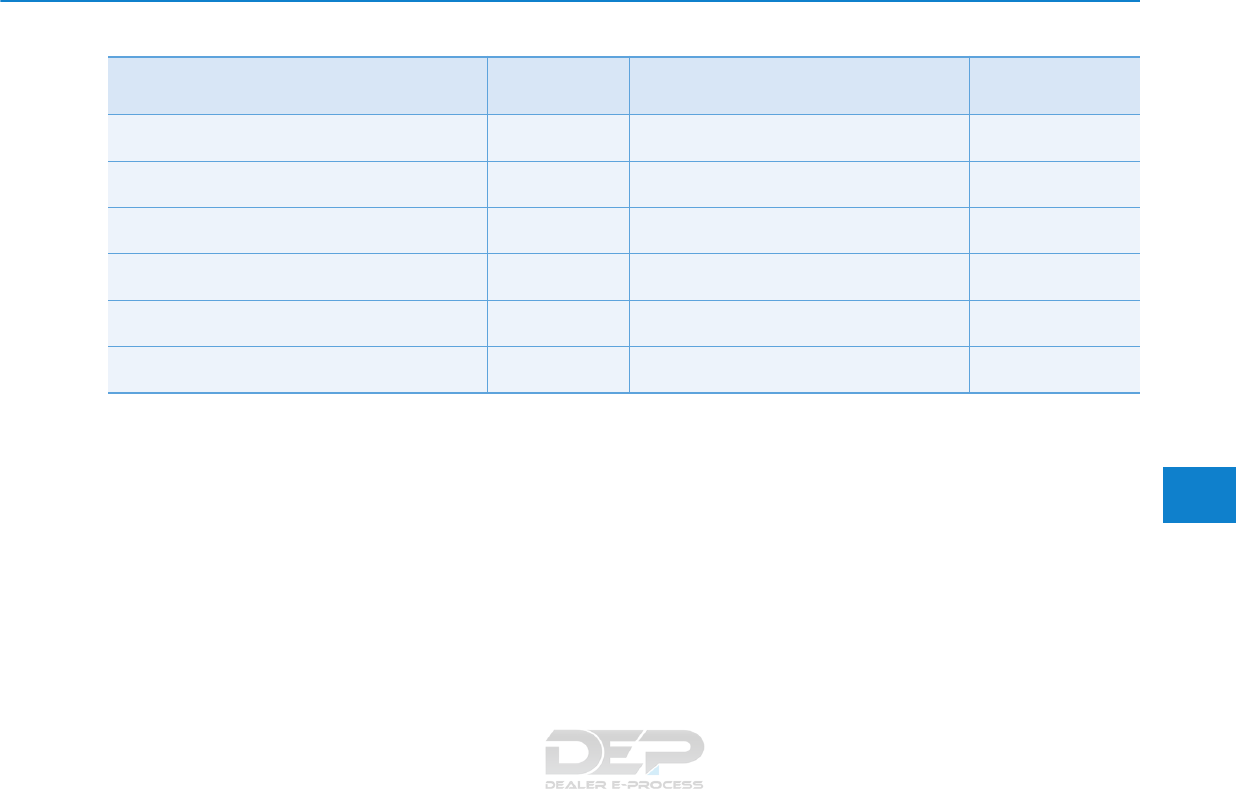 specifications listed on Page 8-7 in the Vehicle Specifications section of the Owner’s Manual.