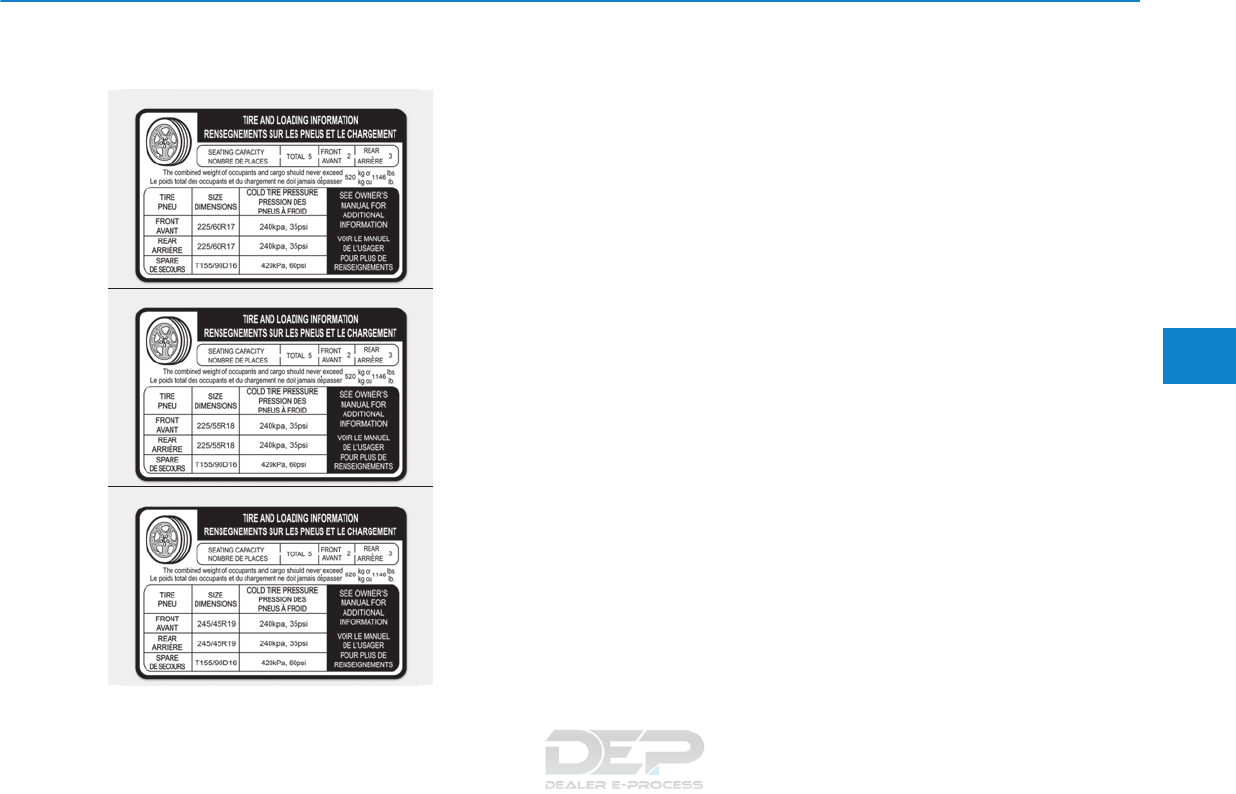Tire specification and pressure label ..............................8-11