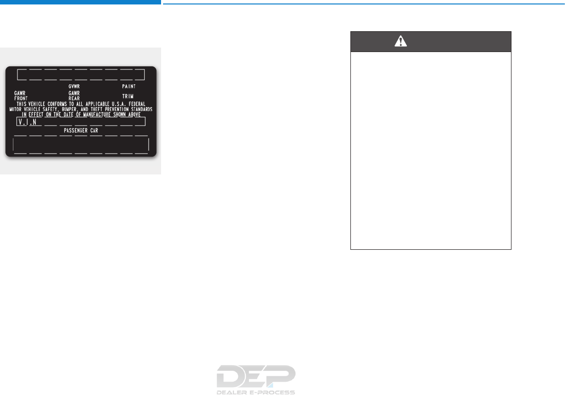 Vehicle identification number (VIN)..............................8-10