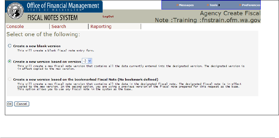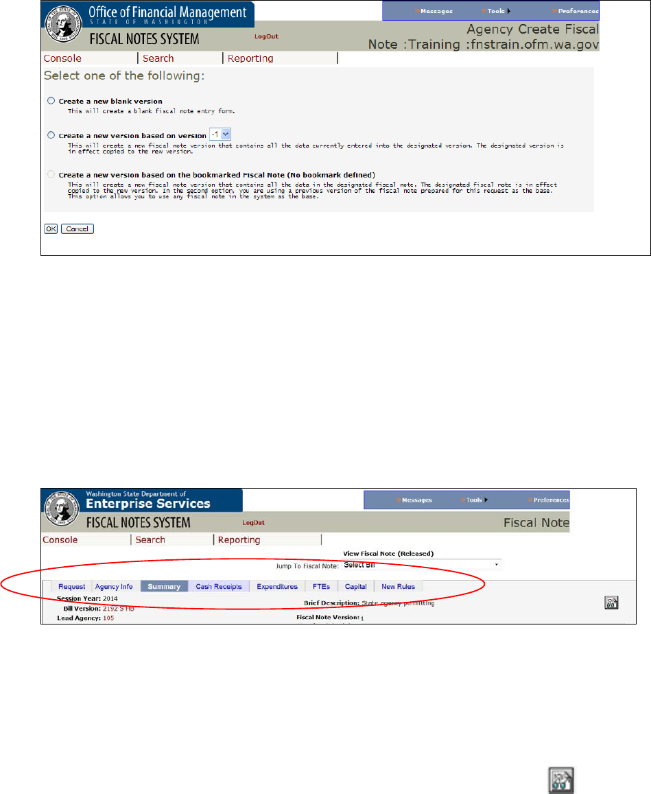 3.3 GETTING STARTED: THE CONSOLE SCREEN AND CREATING A FISCAL NOTE ................................. 17