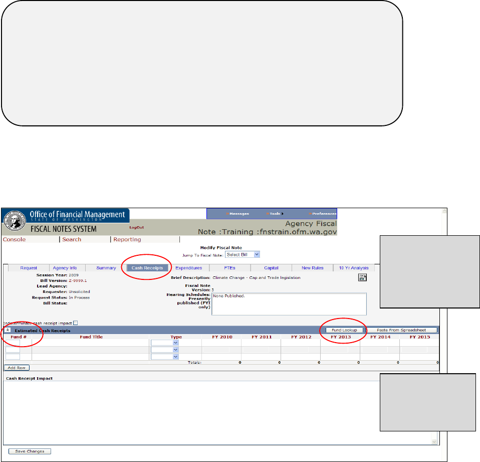 3.6 THE CASH RECEIPTS SECTION OF THE FISCAL NOTE ....................................................................... 23