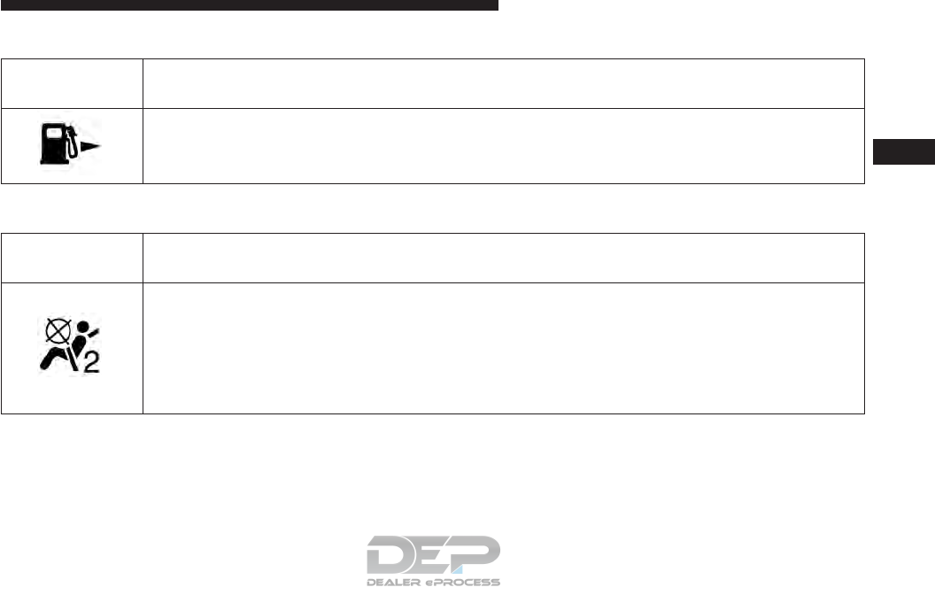 - Passenger Air Bag Indicator Light