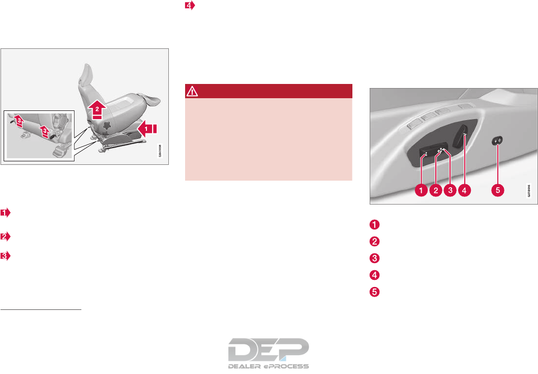 - Front seats – folding backrestThe front passenger's seat backrest on models equipped with the optional sport seat cannot be folded down