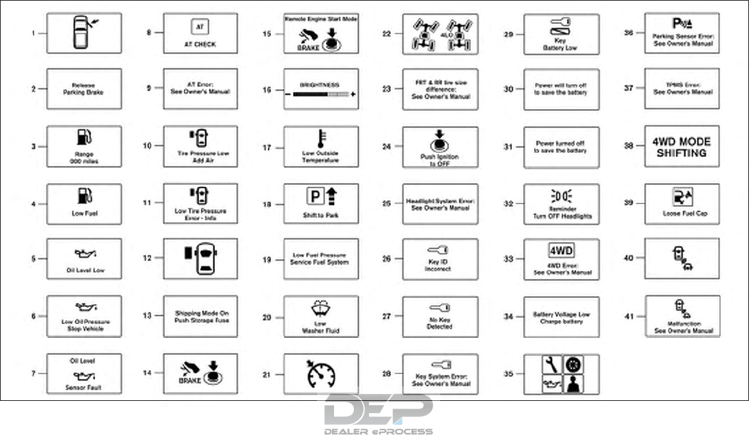 Low fuel warning light .2-25, 2-27, 2-41, 2-42