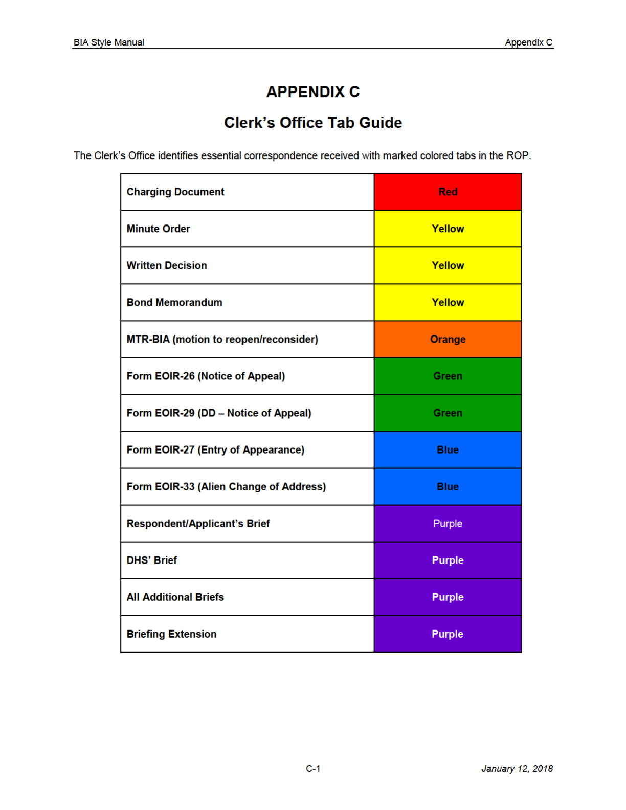 the BIA Web Page for the most current version.