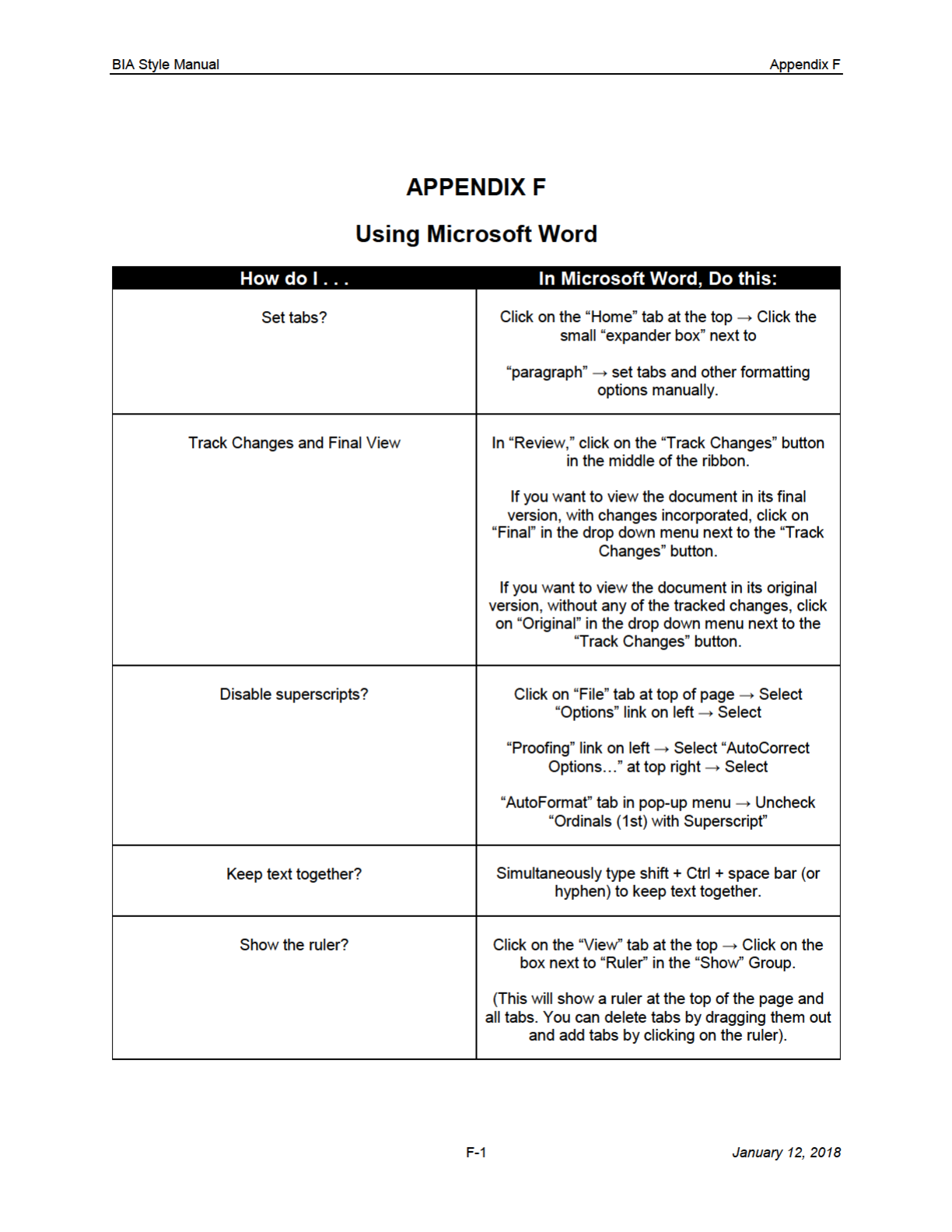 BIA Style Manual Appendix H
