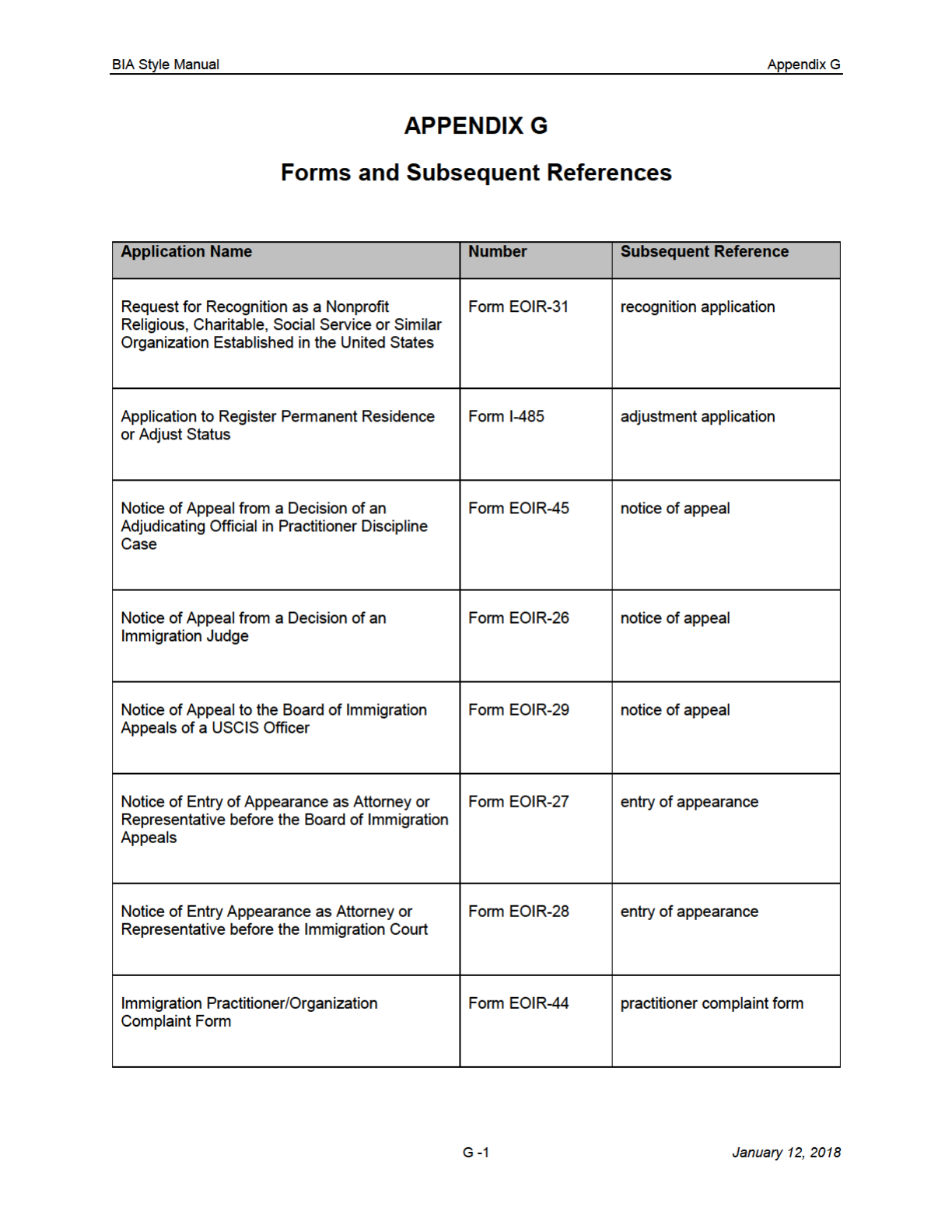 BIA Style Manual Appendix G