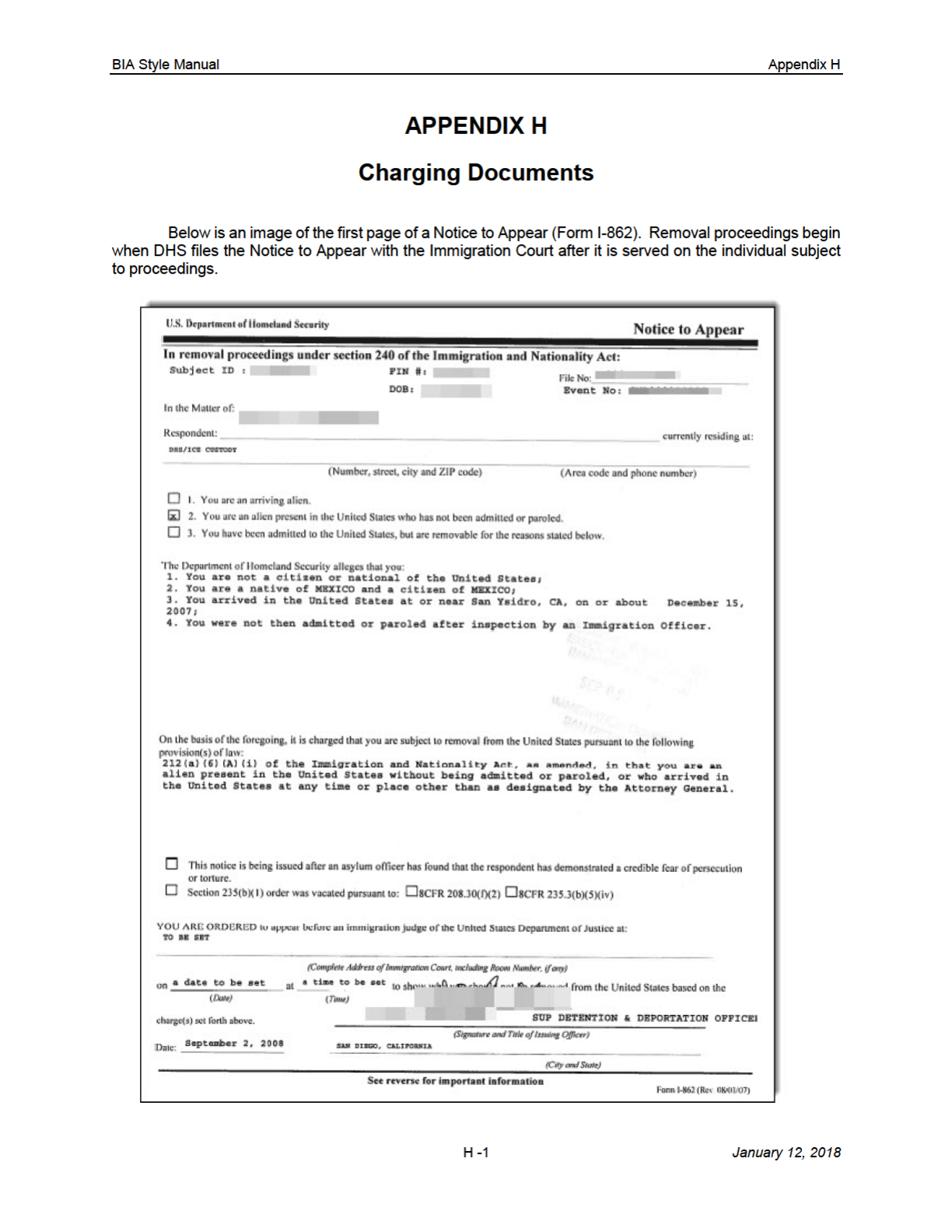 4.12 Charge(s) of Removability, Inadmissibility, or Deportability .............................. 96