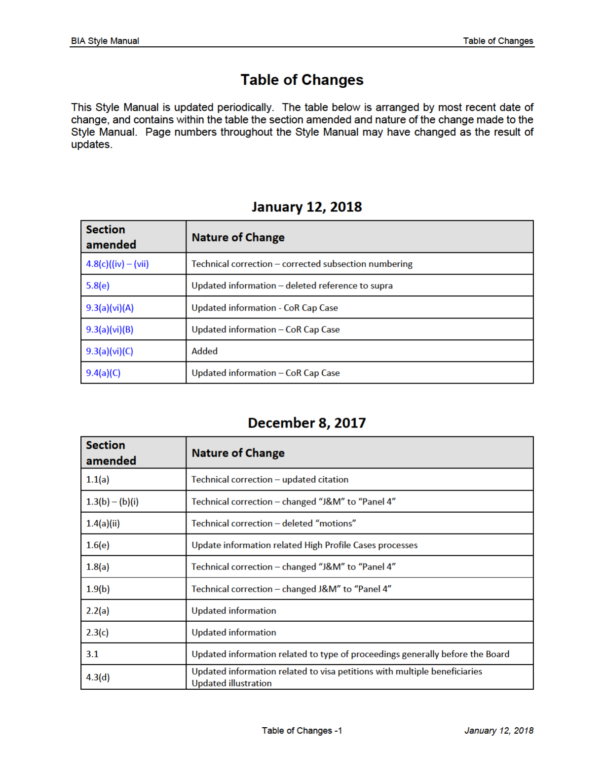 BIA Style Manual Table of Contents