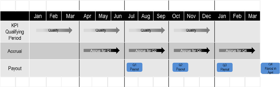 The 2018 Leadership Bonus begins with accruals starting in Q2 2018 for April, May