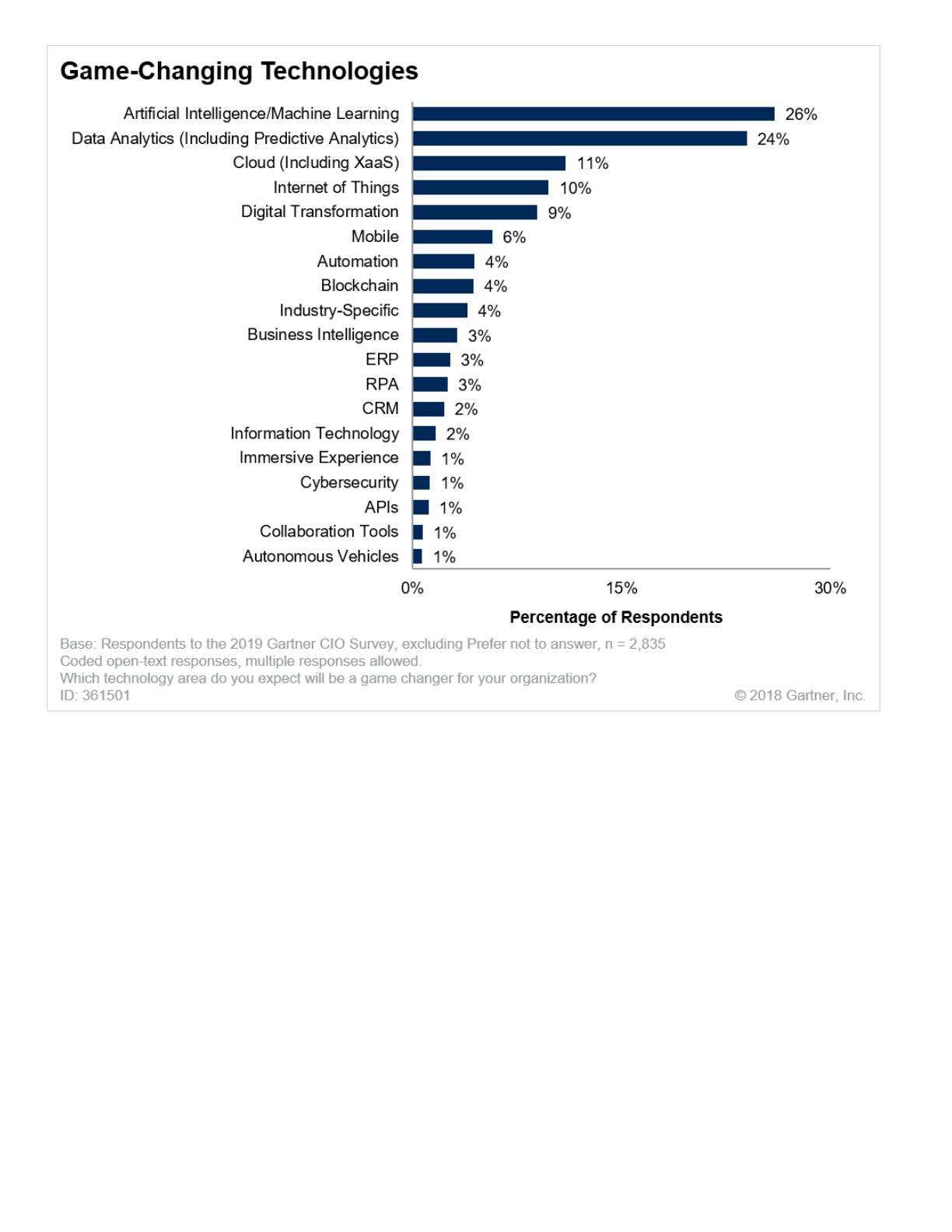 In a recent Gartner survey of CIOs, 1 artificial intelligence (AI) and machine learning (ML) together