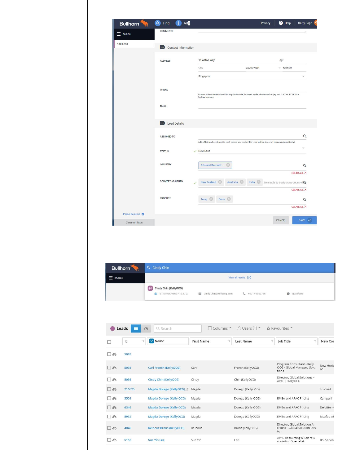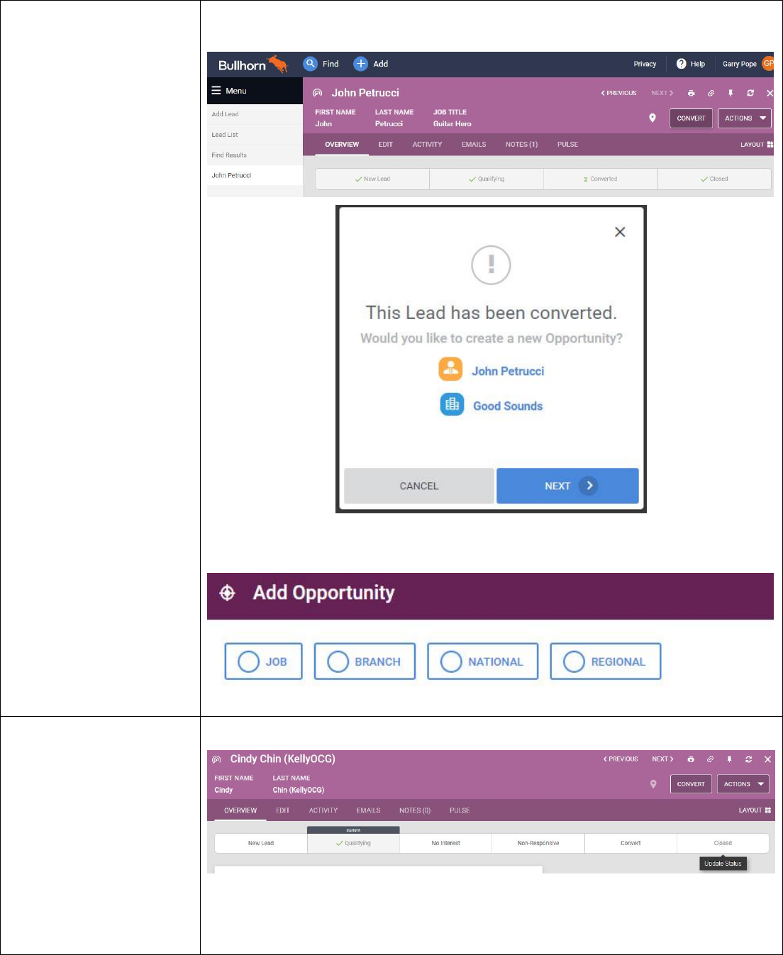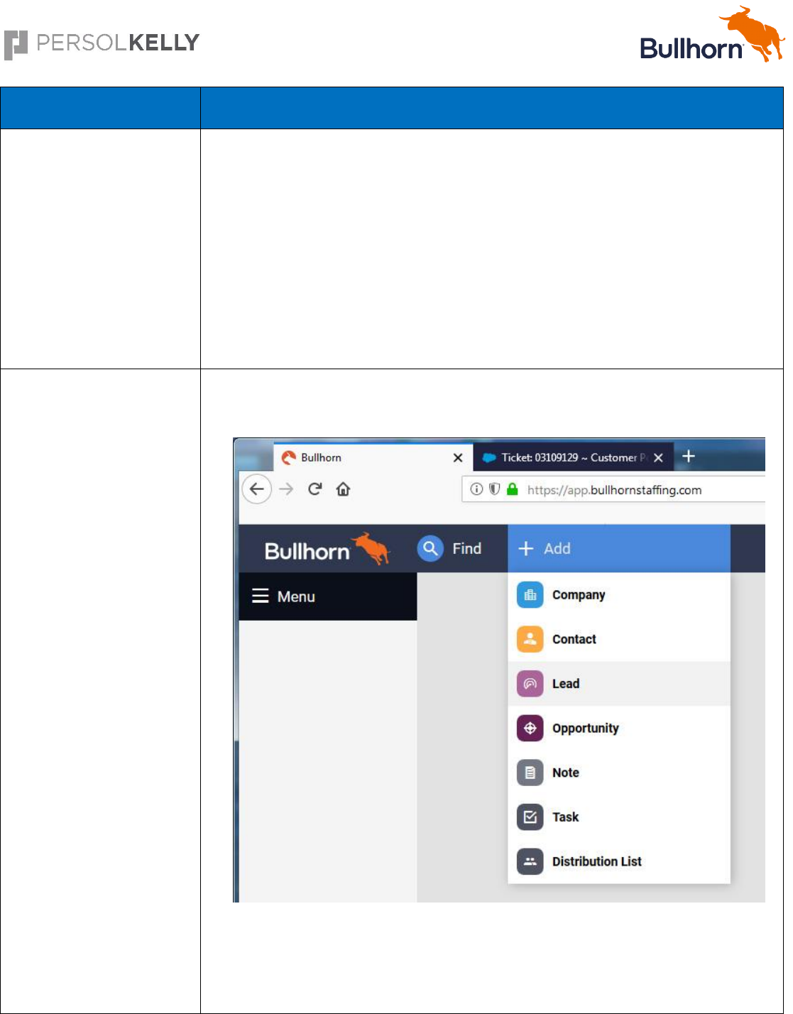 Salesforce Reference Guide Entering Leads (e3045) 2. Process Bullhorn Work Instructions