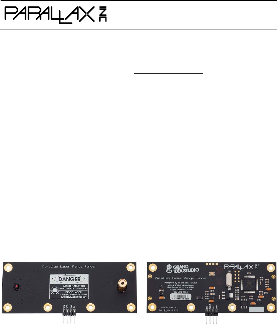Copyright © Parallax Inc. Parallax Laser Range Finder (#28044) v2.0 10/31/2015 Page 1 of 23