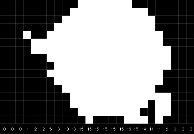 dimensional array containing the number of “valid” pixels per column. Summing the valid pixels