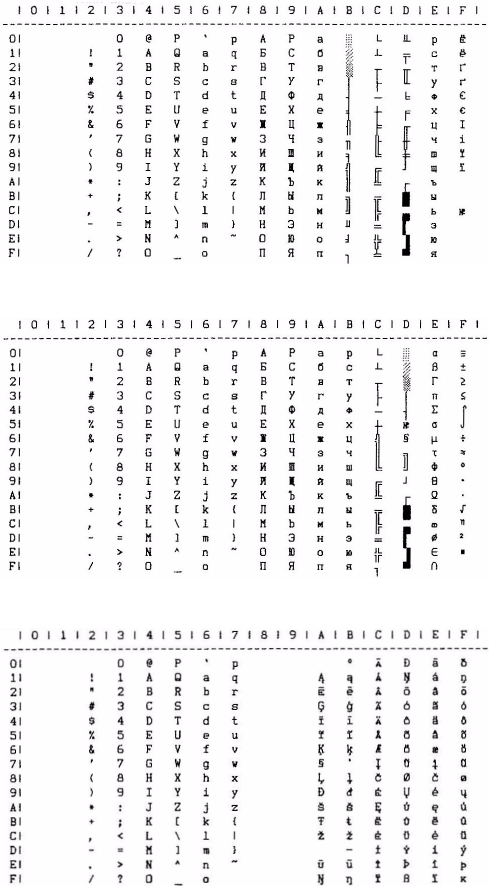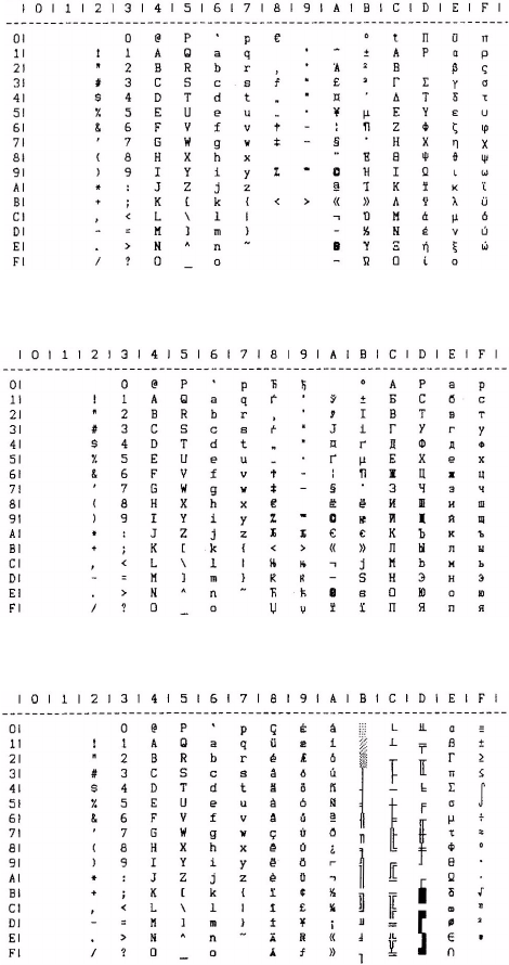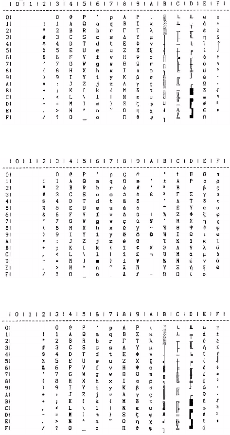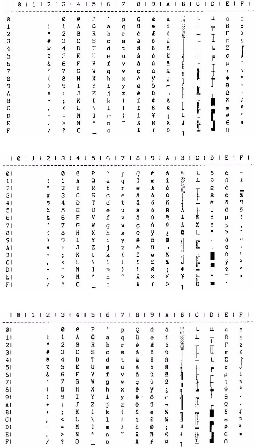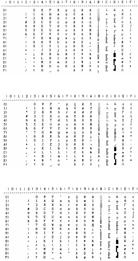 - IBM char set III (all characters) – print one char only