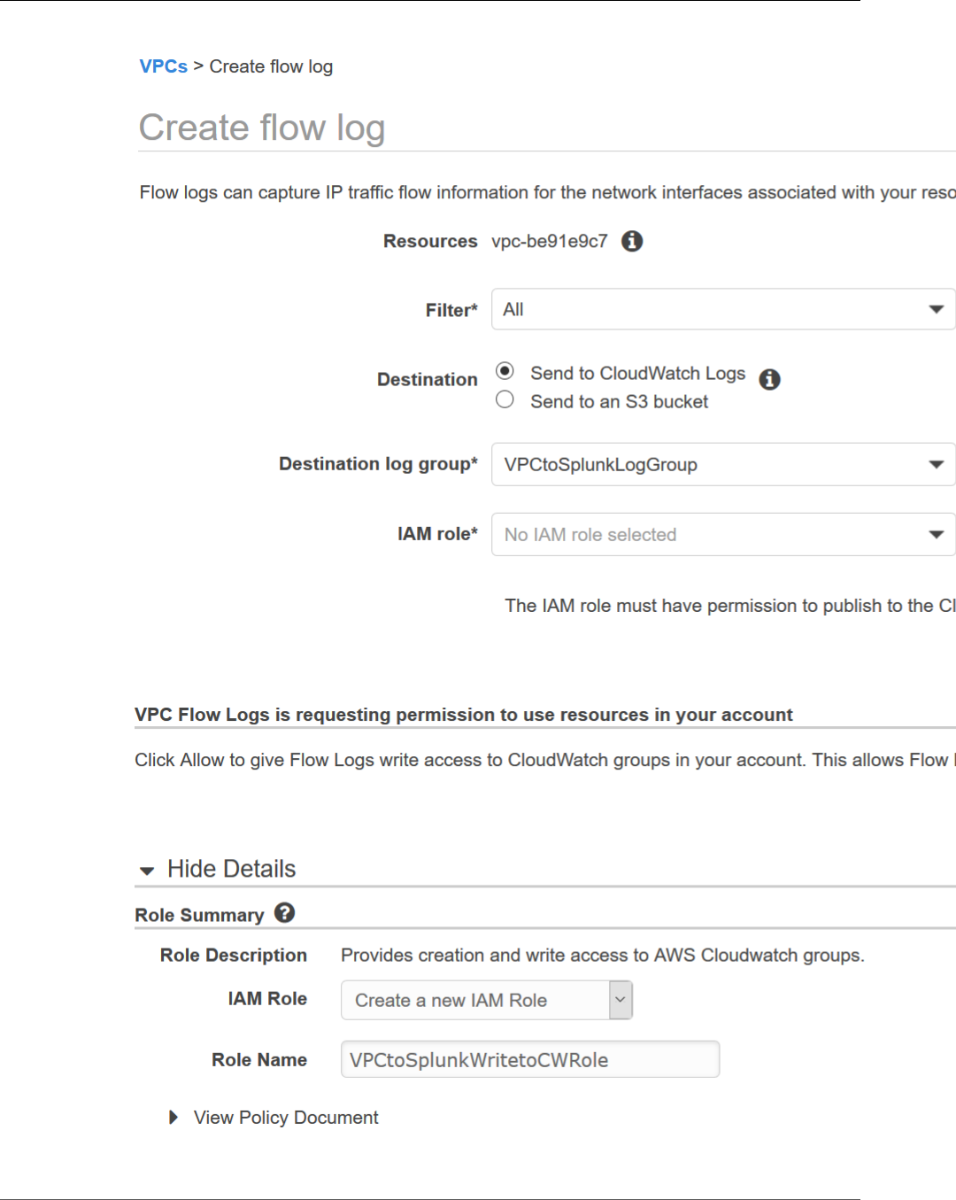 - Tutorial: Sending VPC Flow Logs to Splunk Using Amazon Kinesis Data Firehose