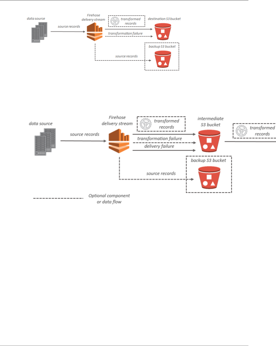 • Each Kinesis Data Firehose delivery stream stores data records for up to 24 hours in case the delivery