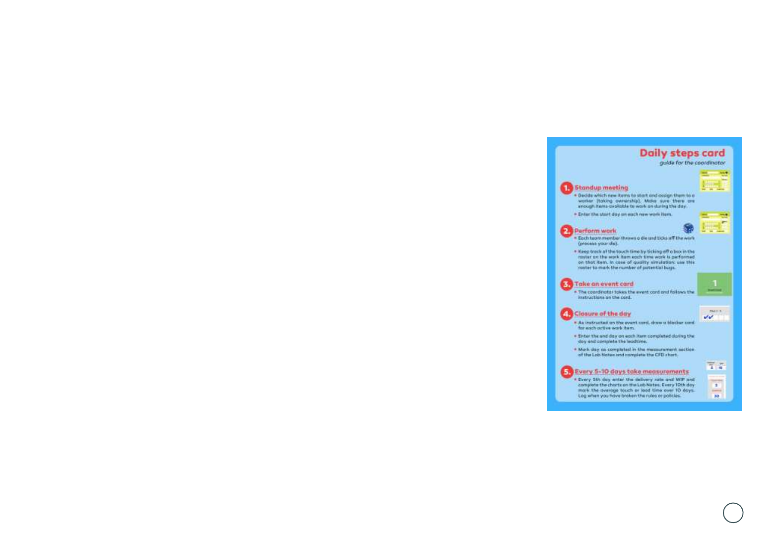 cadences, limiting WIP) that enable collaboration, get the team into flow, and allow an agile
