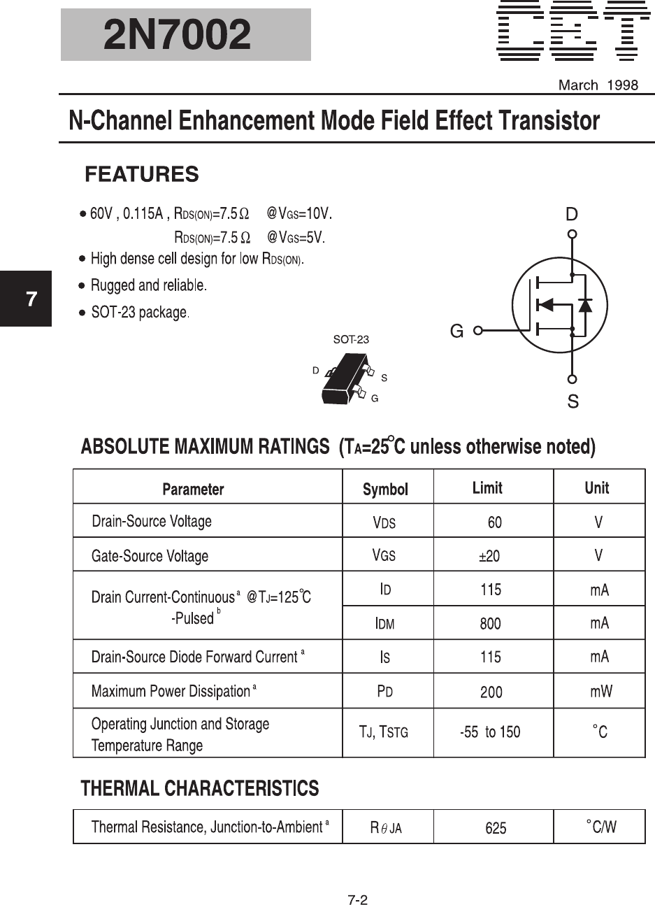2N7002 Datasheet. Www.s Manuals.com. Cet