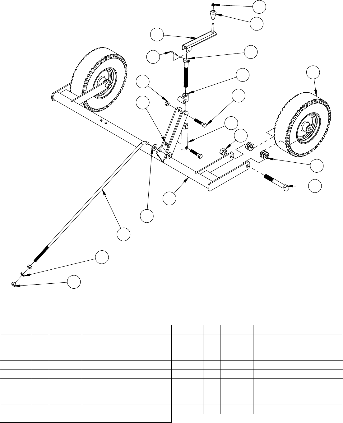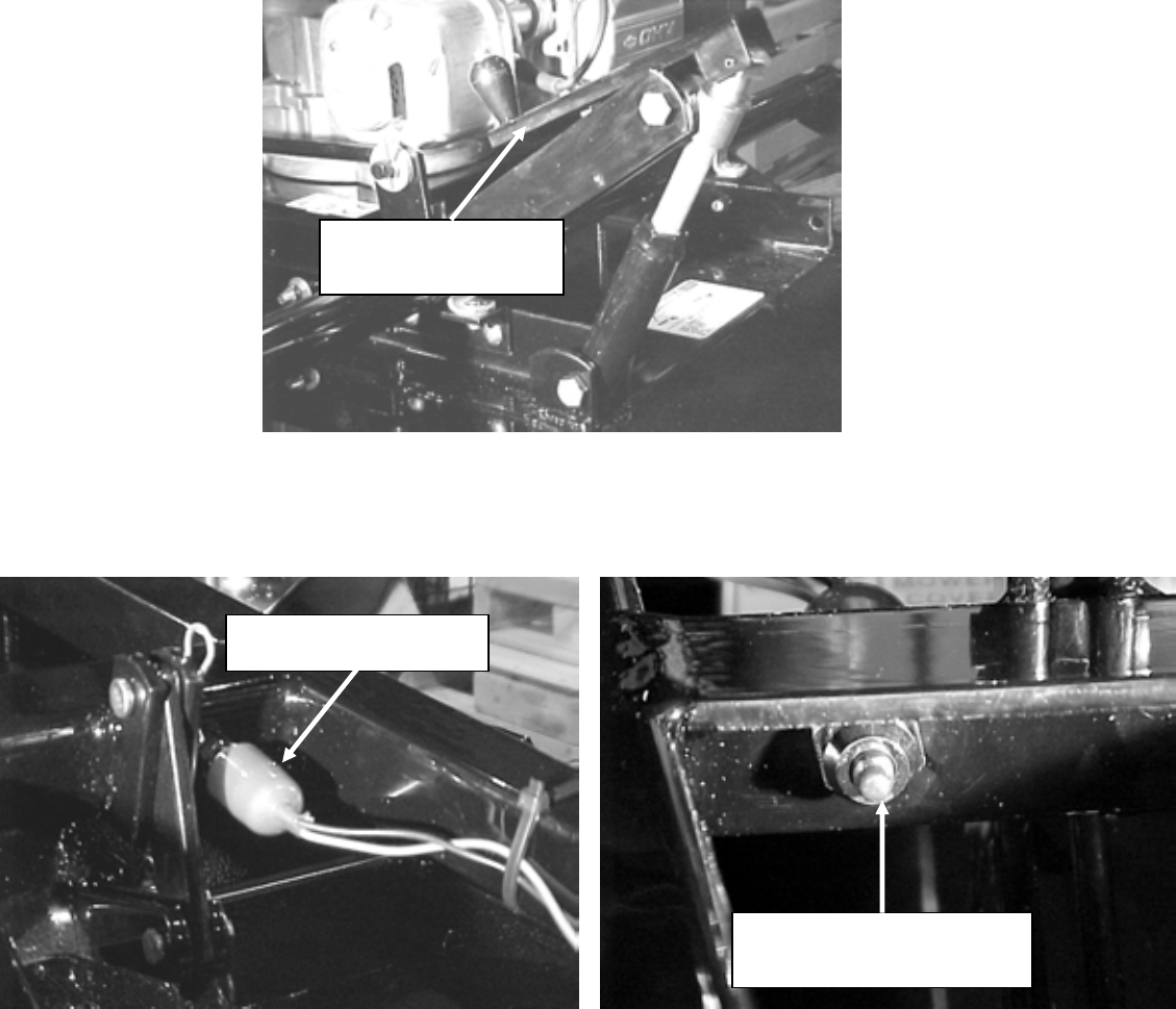 handle on the rear axle sub assembly to raise and lower the height of the deck.
