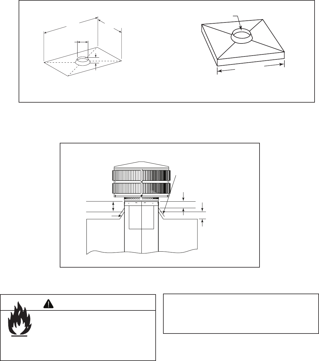 • Install the roof fl ashing or the chase top. See Table 1 for required dimensions of the chase top if using a shroud.