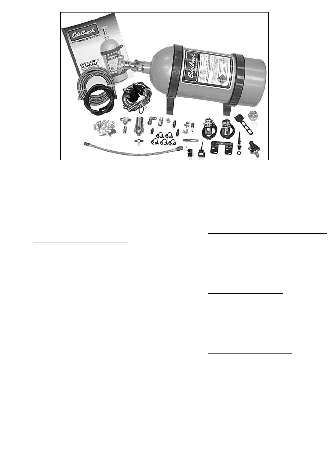 and use of your Edelbrock Nitrous System. Please read it completely before you install and use your system. Please pay close