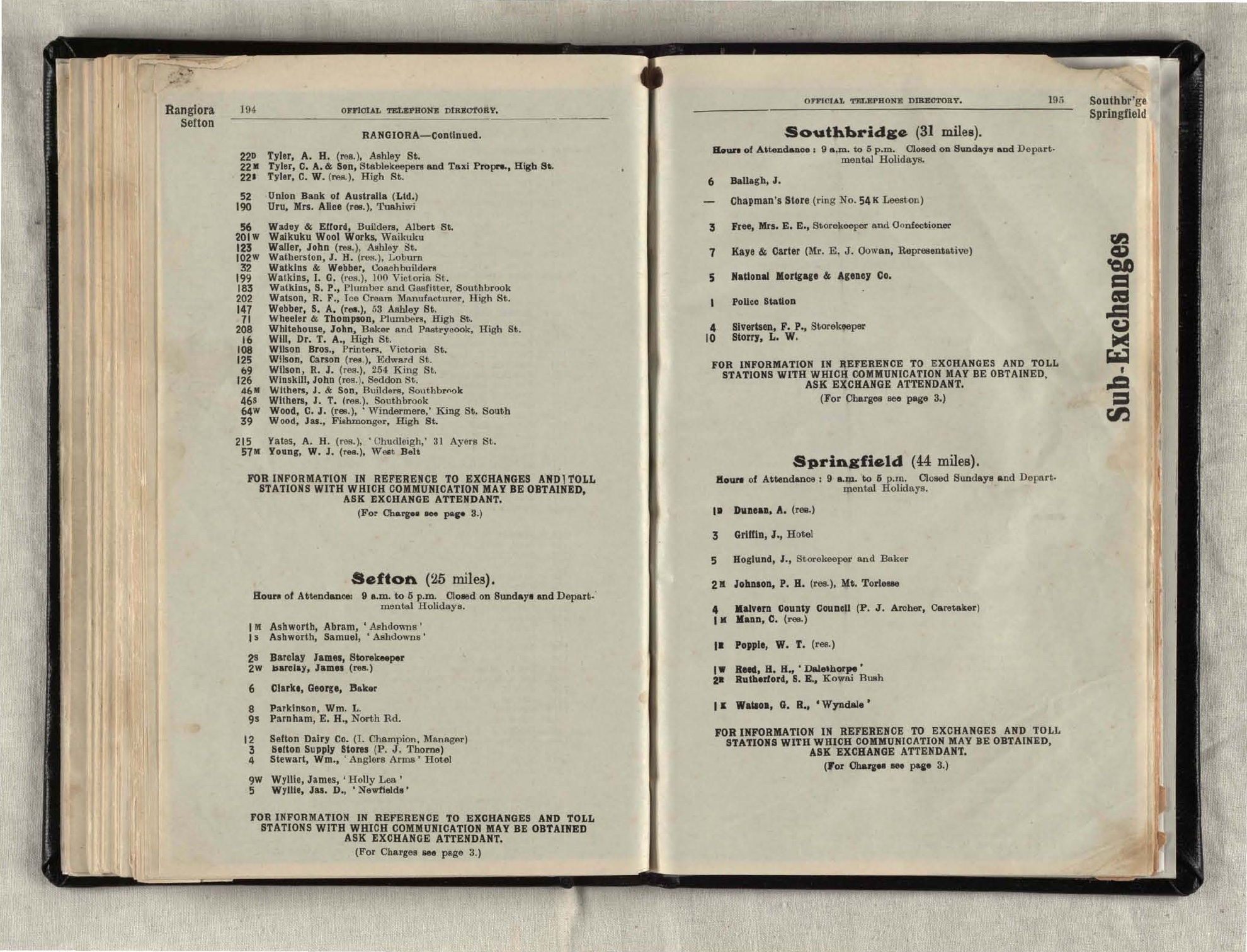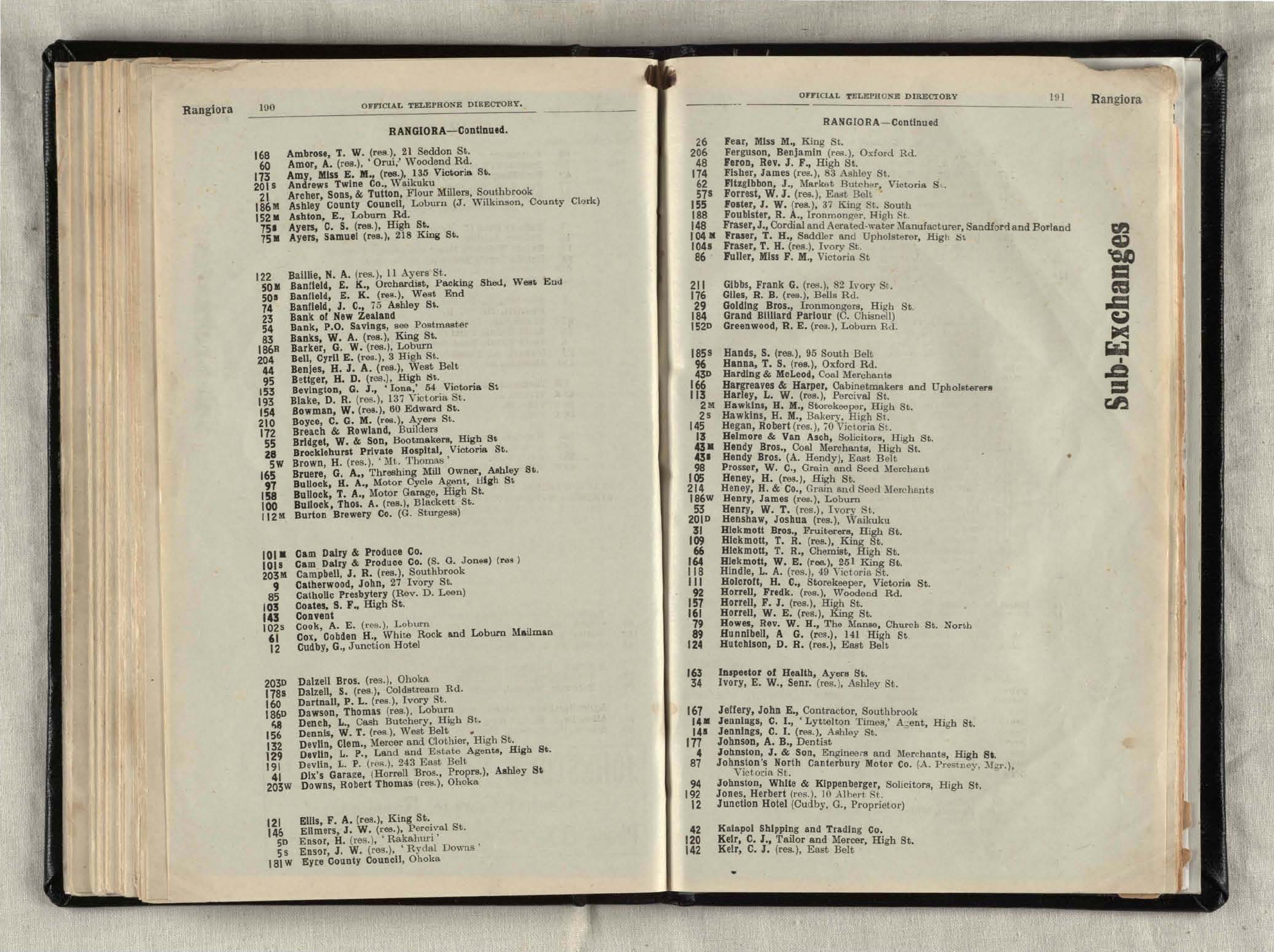 Telephone Directory. Christchurch. 1922 23D 389765 073 104