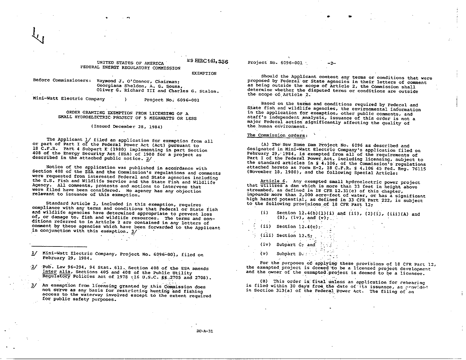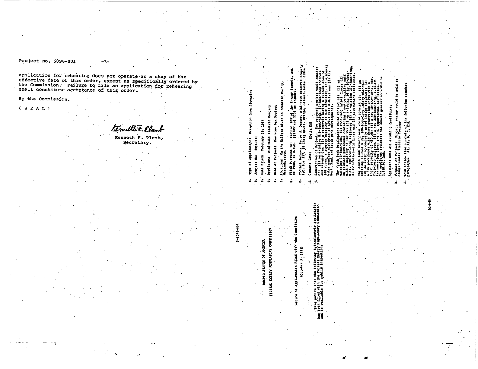 MINI-WATT HYDROELECTRIC LLC PROCEDURAL ORDER