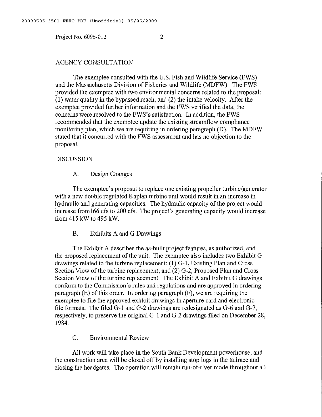 455 KW hydro-electric generator located in Orange, Massachusetts. The Facility’s energy,